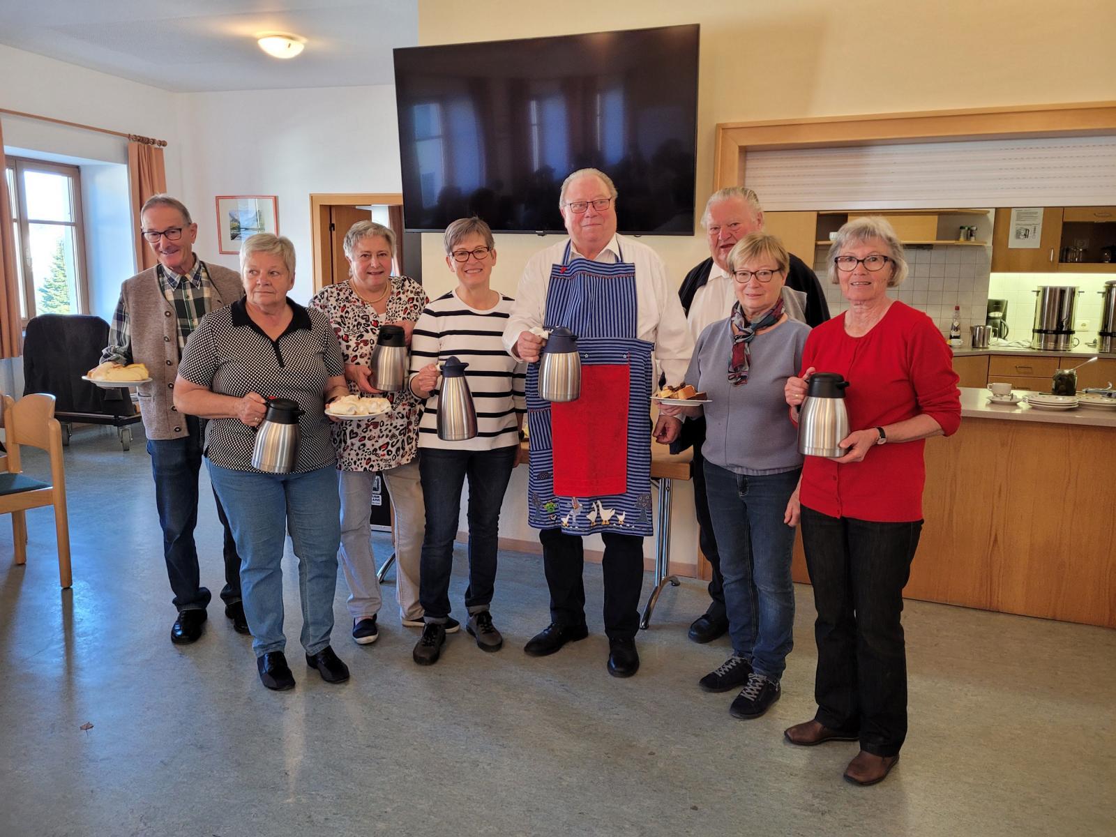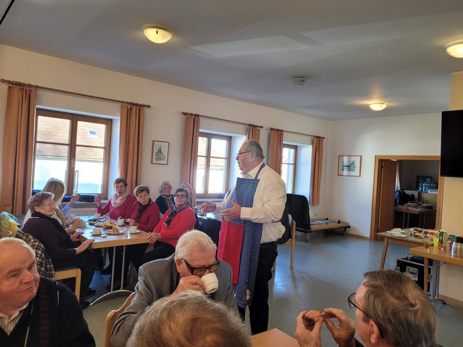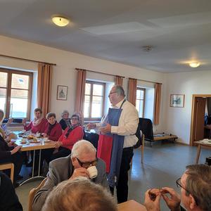 Die Frauen und Männer der Pensionisten versorgten mit köstlichen Mehlspeisen, Brötchen und Kaffee oder Tee. Konsulent Weiermair begrüßte alle Anwesenden mit Handschlag und eröffnet den Pfarrcafe mit einer kurzen Ansprache. Damit drückte er seine Freude aus, dass Bürgermeister Schneckenleitner, Vizebürgermeister Wenzl, die Pfarrleitung und die vielen Gäste der Einladung gefolgt waren.