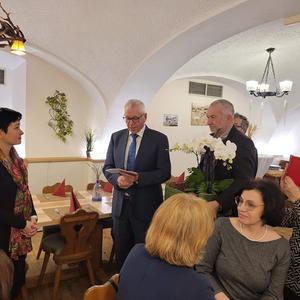 Der Kirchenchor beging im Anschluss seine Jahresschlussversammlung, "Chorjause" genannt, im Gasthaus Kulinarium in Adlwang. Chorleiterin Christine Kerschbaummayr berichtete über das vergangene, bzw. über die letzten fünf Jahre, in denen sie Chorleiterin war. 2022 gab es 21 Proben und 17 Aufführungen, wie die gemeinsame Festmesse in Adlwang zum Gedenken von Bundeskanzler Mayr, kirchliche Hochfeste, Begräbnisse und zuletzt die Weihnachtsgottesdienste sowie den ORF Gottesdienst am 4. Adventsonntag. Der Dank gilt auch den Solisten, dem Orchester, den Organisten und den Sängern und Sängerinnen. Pfarrer Hofmann bedankte sich herzlichst für die gute Zusammenarbeit. Aus beruflichen Gründen beendet Christine Kerschbaummayr die ehrenamtliche Funktion der Chorleiterin. Johann Ömmer übernimmt den Kirchenchor für die nächsten Jahre.