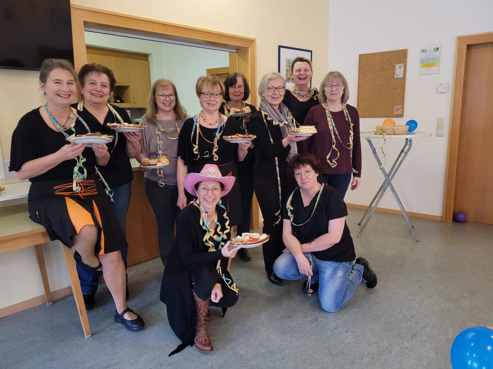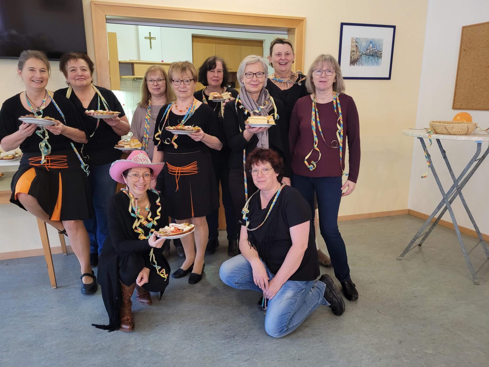 Mit köstlichen Kuchen und natürlich auch mit Faschingskrapfen, Brötchen und Kaffee oder Tee konnte man richtig gut frühstücken. In ungezwungener Atmosphäre gab es viele anregende Gespräche, viele fröhliche Gesichter und Heiterkeit bis zum Läuten der Mittagsglocken.