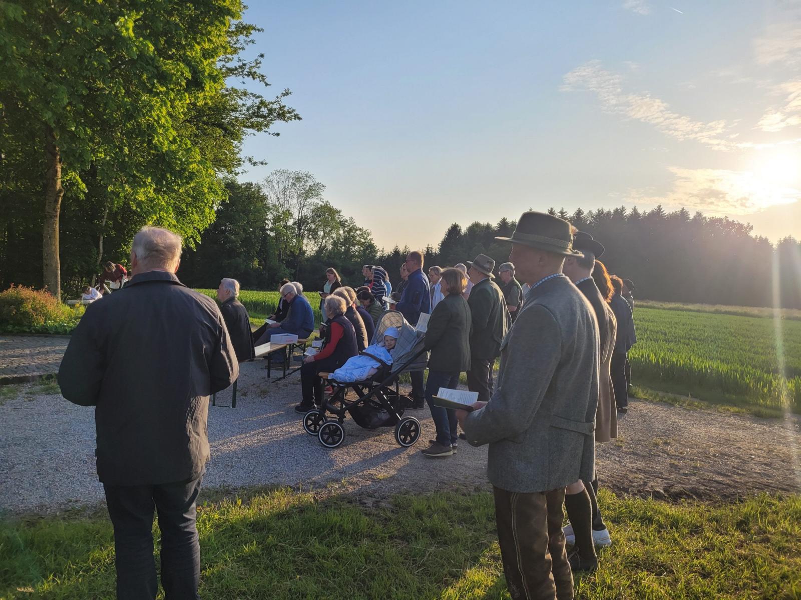Die Dankbarkeit für die Natur, die Tiere und das Wachsen und Gedeihen drückte auch Jagdleiter Toni Frantal in seiner Begrüßung aus. Das schöne Wetter und das milde Abendlicht machten die Feier zu einem erhebenden Erlebnis in der Natur. Im Anschluss lud die Jägerschaft auf einen Umtrunk ein.