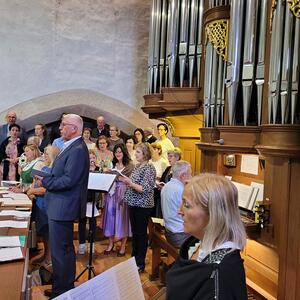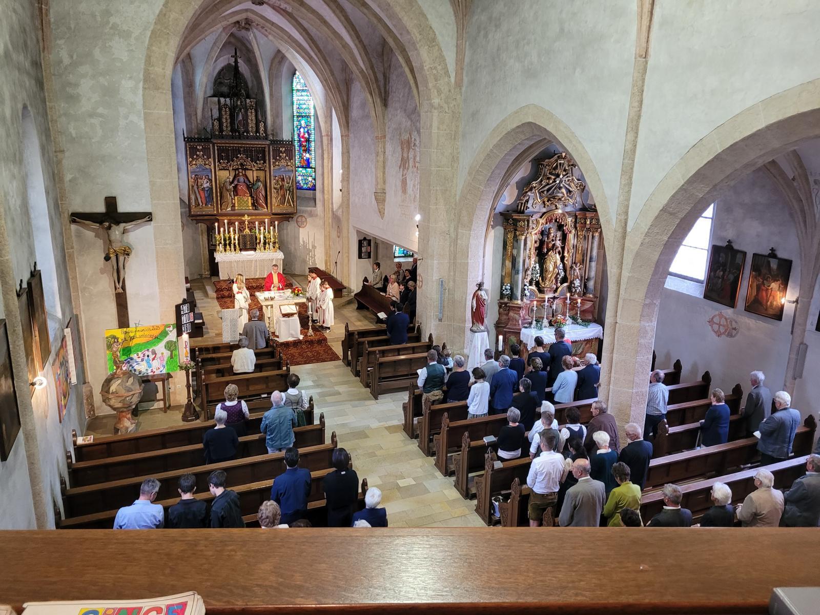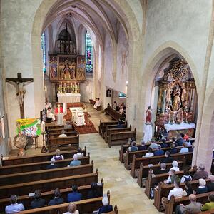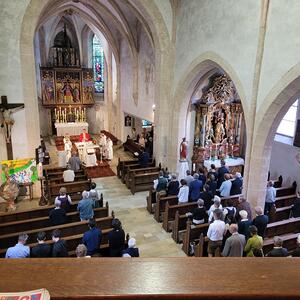 Das Patrozinium "Peter und Paul" wurde am Sonntag, den 2. Juli 2023 mit dem Festgottesdienst um 10 Uhr gefeiert. Der Kirchenchor begleitete die Liturgie mit schwungvollen Gesängen. Pfarrer Hofmann führte in der Predigt die Leistungen und die Bedeutung der Apostel Petrus und Paulus vor Augen. Die Bücherei feierte mit dem Bücherwurm den 35-jährigen Bestand (gegründet 1988) und Ernest Ulbrich berichtete zu den historischen Jubiläen "300 Jahre Kirchturmkuppel" und "100 Jahre Glocken" mit einer kurzen Ansprache.