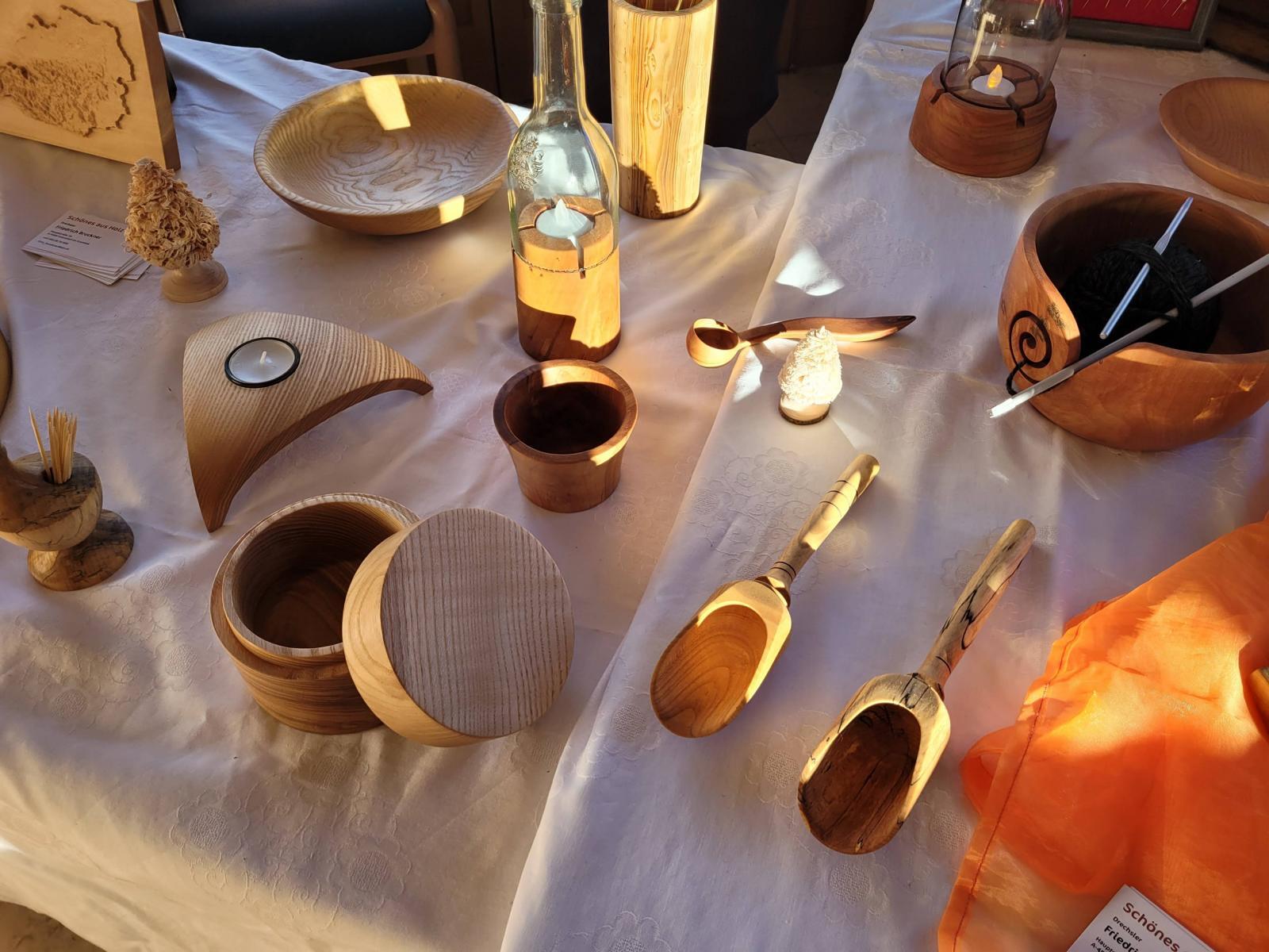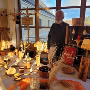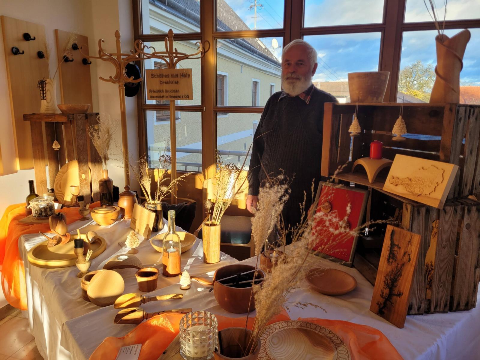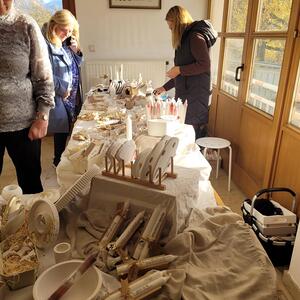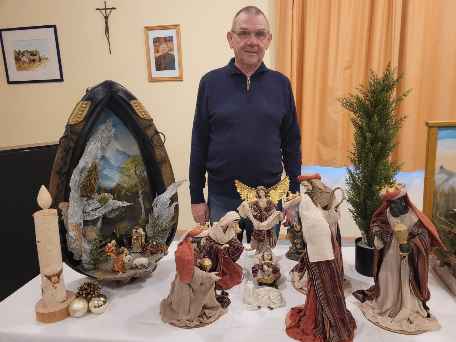 Unter seinen Krippen befinden sich die klassischen Darstellungen als alpenländische und orientalische Krippe. Er zeigte aber auch sehr ungewöhnliche Objekte, wie die Krippe in der alten "Milchpitschen" oder im Sauna-Aufgusskübel. Fröhliches Geplauder, Interesse an den ausgestellten Werken und an der Handwerkskunst, besonders auch an den Bastelarbeiten der Diakoniewerkstätte kennzeichneten die zwei Tage.
