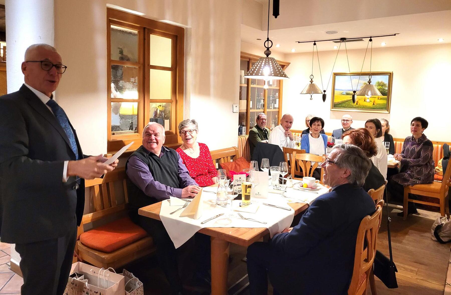 Der Kirchenchor und -orchester wurden im Anschluss an den Gottesdienst zum Mittagessen eingeladen. Chorleiter Johann Ömmer brachte seine Bilanz über das vergangene Kirchenchorjahr, in dem 20 Aufführungen (12 Messen und 8 Begräbnisse) und 20 intensive Chorproben stattfanden. Besonders bedankte er sich bei der Pfarre, den Organisten, Solisten und beim Orchester sowie allen Sängern und Sängerinnen.
