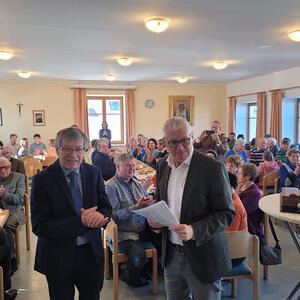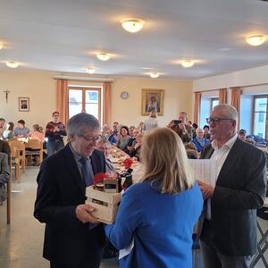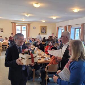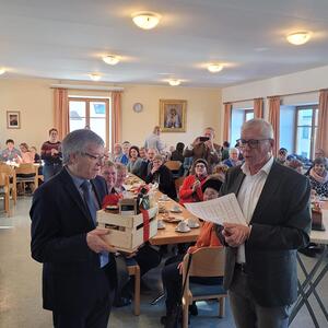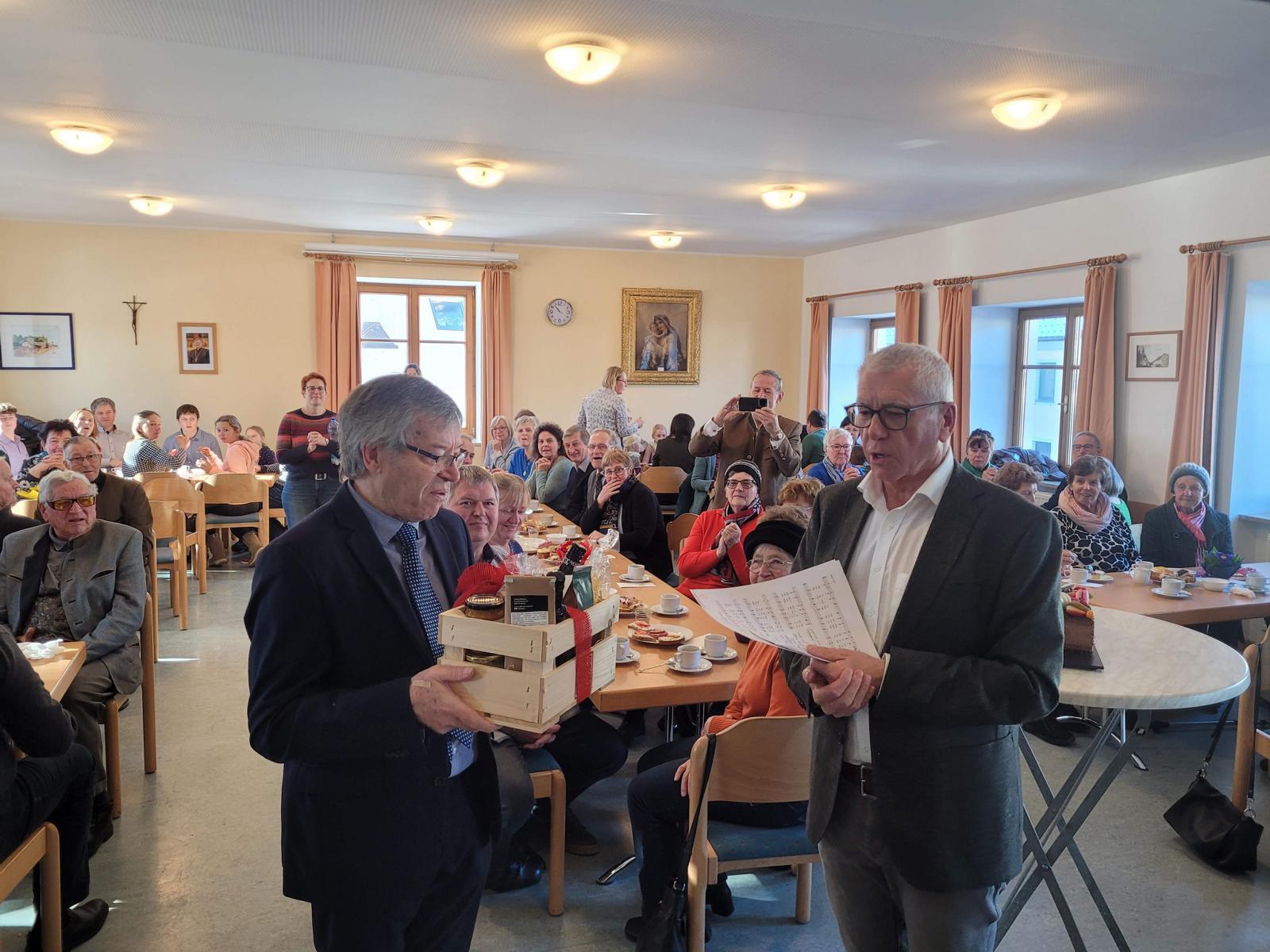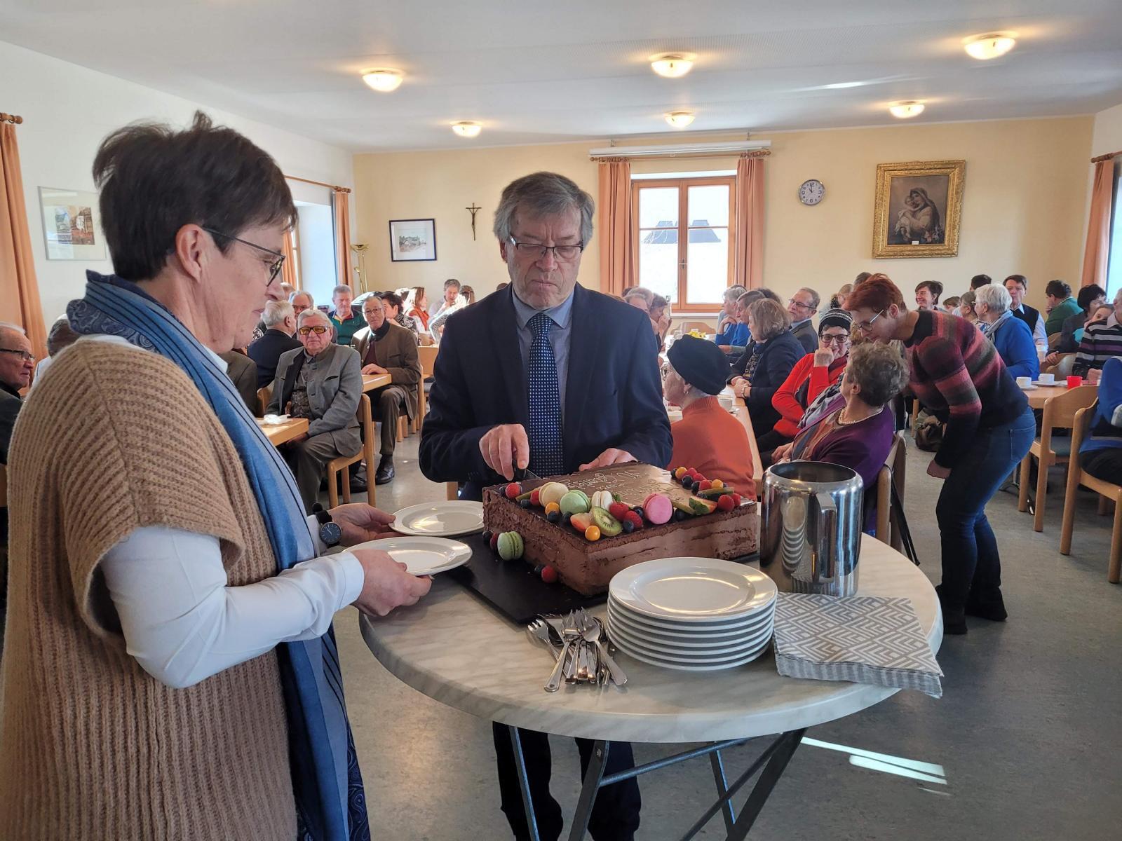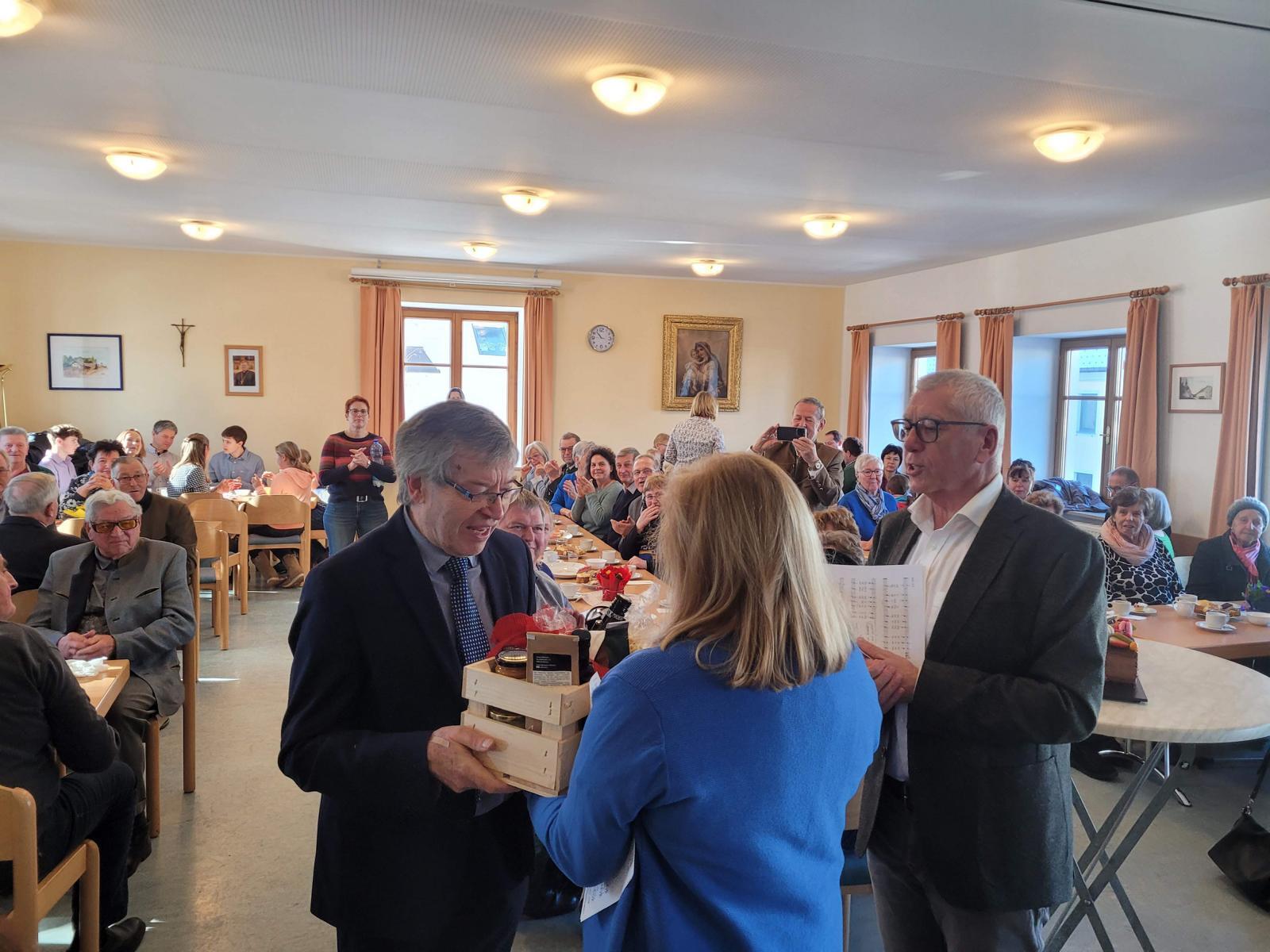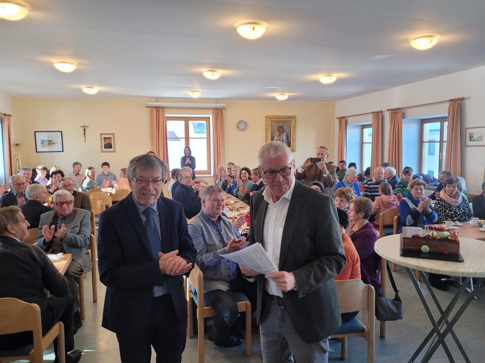 Als Gratulanten stellten sich der Kirchenchor mit Gesängen, der Seniorenbund und die Pfarre selbst ein. Bei Kuchen, Kaffee und Brötchen feierte die ganze Pfarre im überfüllten Pfarrsaal mit dem Pfarrer. Herzlichen Glückwunsch und noch viele gesunde und erfüllte Jahre!!