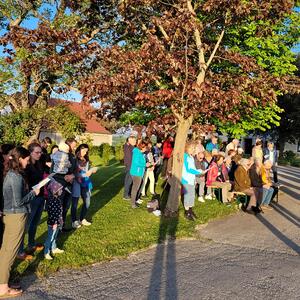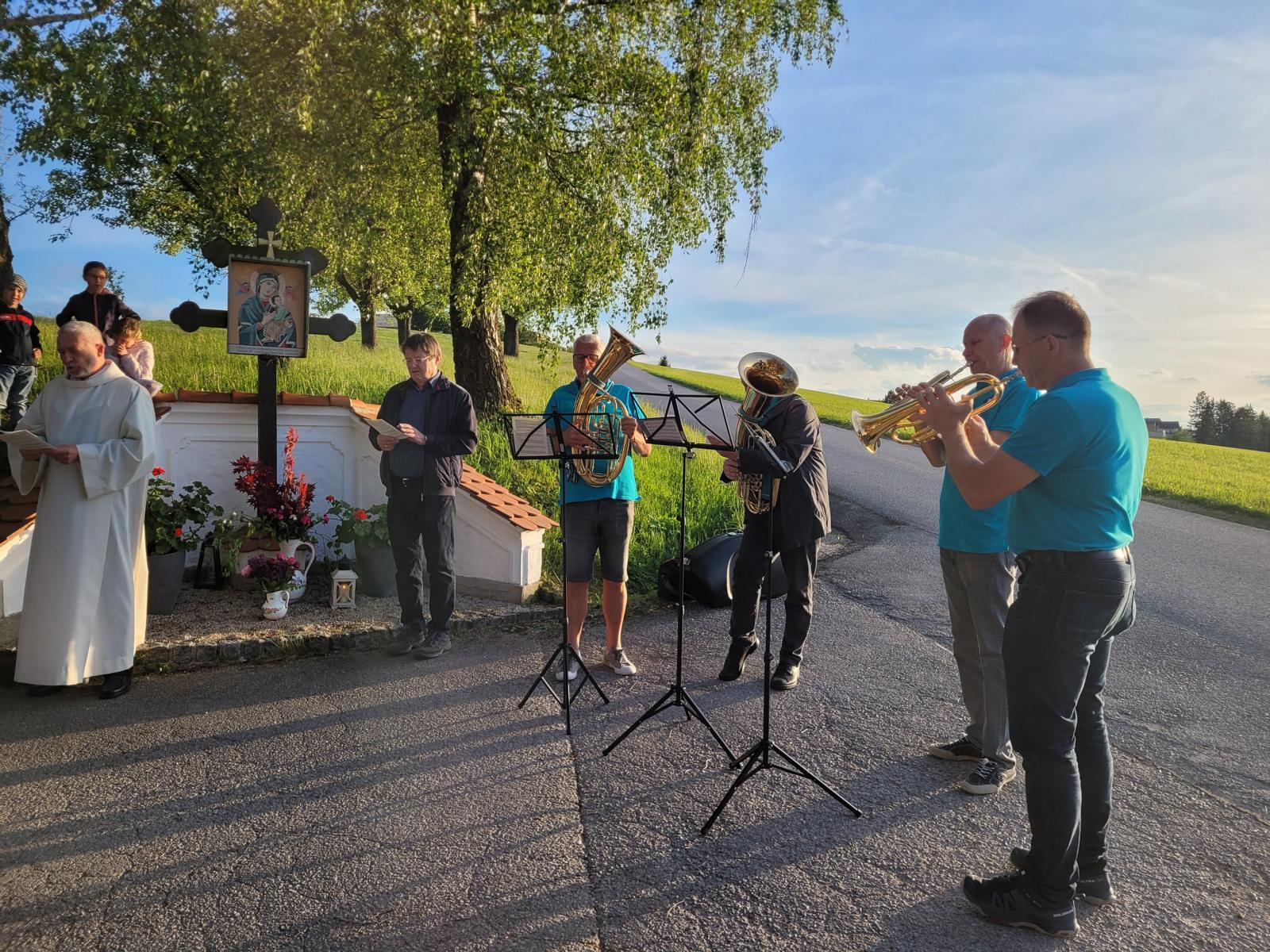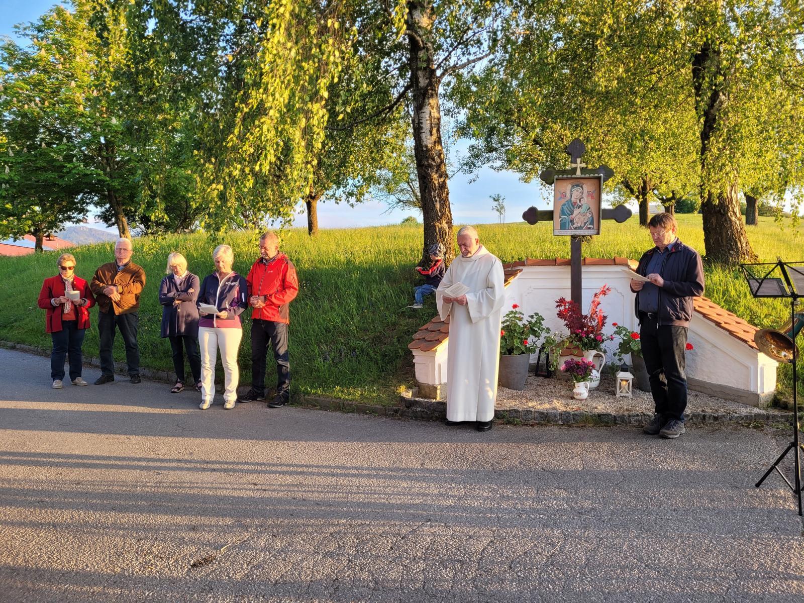 Familie Huemer-Kals vom Köglgut lud am Sonntag, den 5. Mai 2024 zur Maiandacht bei ihrem Wegkreuz ein. Bei wunderschönem abendlichen Maienwetter folgten viele Nachbarn, Freunde und Bekannte dieser Einladung. Mag. Ernest Ulbrich gestaltete die Andacht und ein Bläserquartett der Musikkapelle begleitete die Marienlieder, während die Sonne im leuchtenden Rot unterging. Im Anschluss lud die Gastgeberfamilie zur Agape ein.