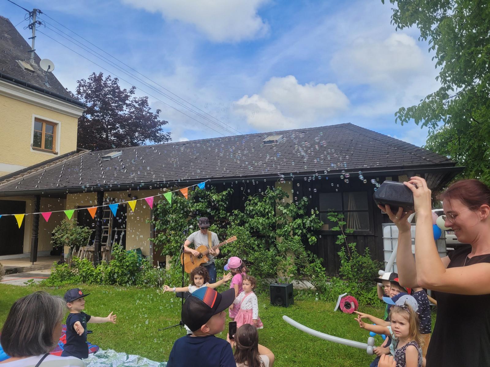 Das Wetter am Vormittag war nicht besonders einladend, doch es wurde zu Mittag und am Nachmittag immer besser. Der Pfarrhofgarten füllte sich mit jungen und älteren Gästen und es gab eine ganz tolle Spielnachmittag-Stimmung. Der Dank gebührt den Organisatorinnen von Mütterrunde, Spiegel-Spielgruppen und Freunden.