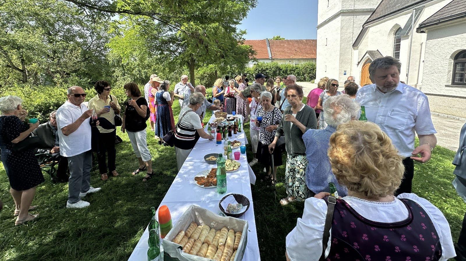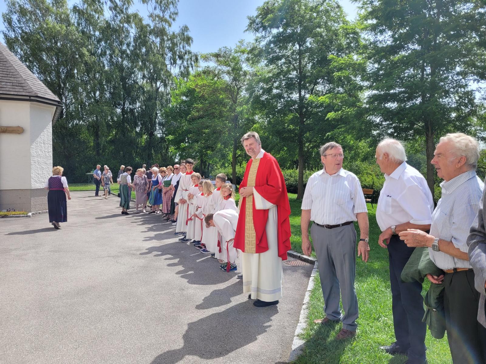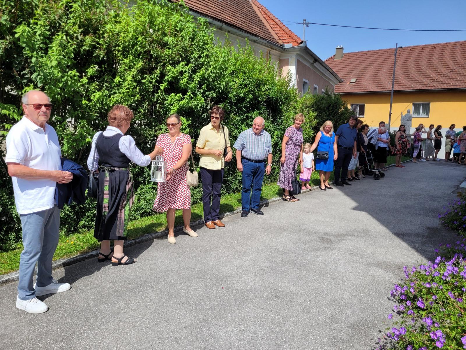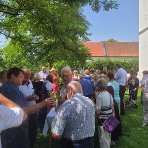 Der Olivenzweig und der Wunsch "Der Friede sei mit Dir" steht für den Frieden unter den Menschen, der Kirchenschlüssel auf einem roten Polster mit dem Wunsch "Das ist der Schlüssel zum Himmelreich" und die Laterne mit einer brennenden Kerze und dem Wunsch "Christus das Licht". Im Anschluss feierte man eine Agape, die von allen mitgetragen wurde.