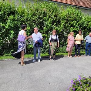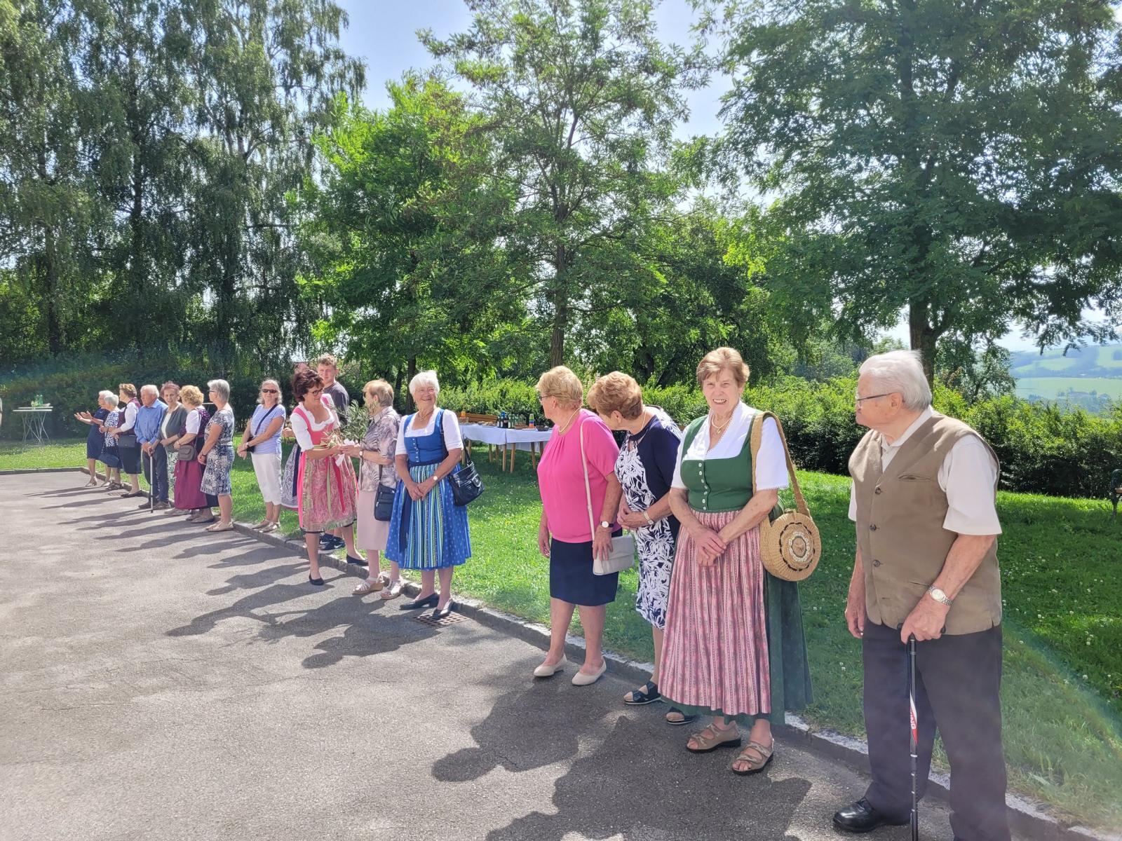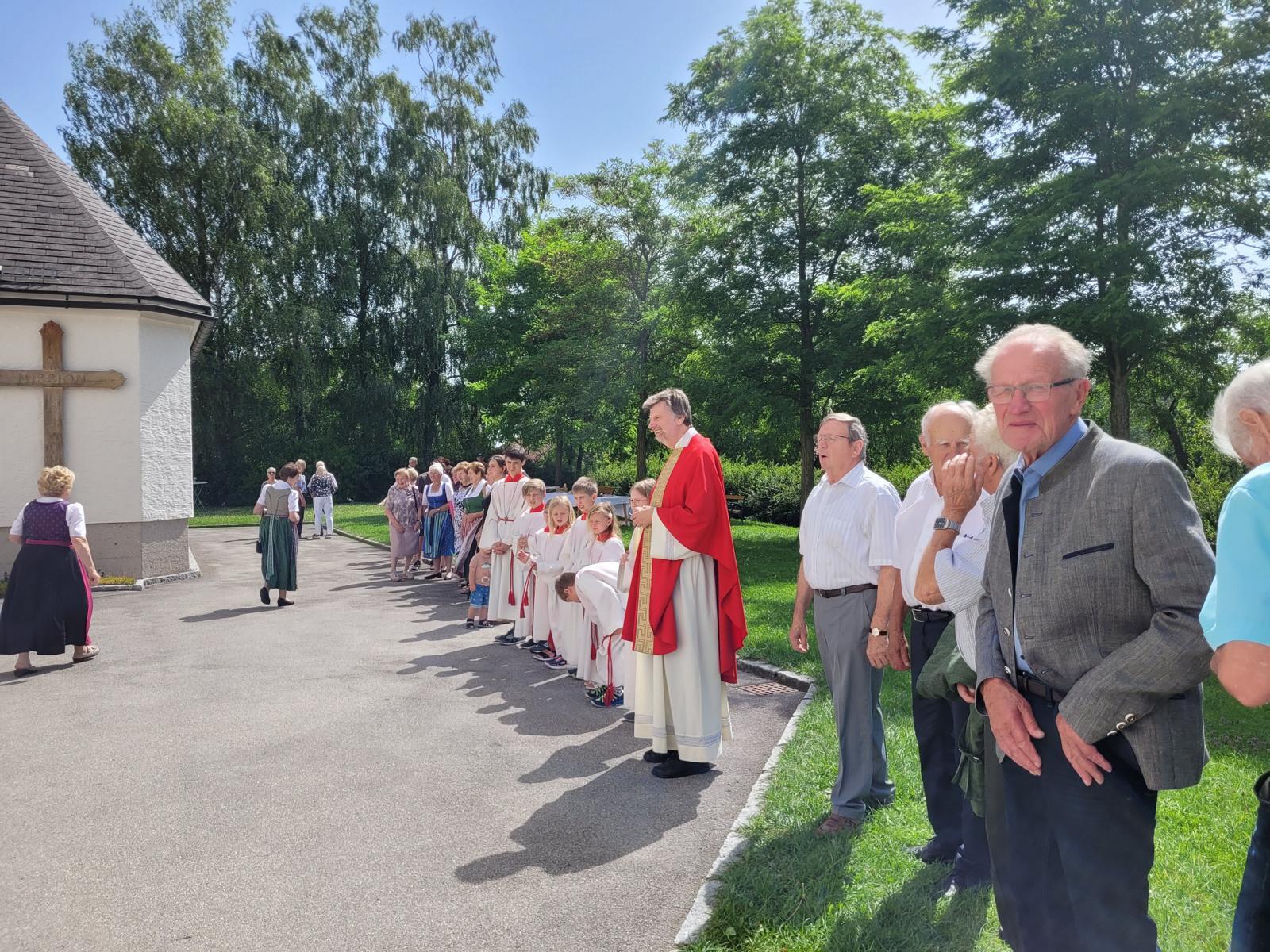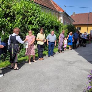 Der Olivenzweig und der Wunsch "Der Friede sei mit Dir" steht für den Frieden unter den Menschen, der Kirchenschlüssel auf einem roten Polster mit dem Wunsch "Das ist der Schlüssel zum Himmelreich" und die Laterne mit einer brennenden Kerze und dem Wunsch "Christus das Licht". Im Anschluss feierte man eine Agape, die von allen mitgetragen wurde.