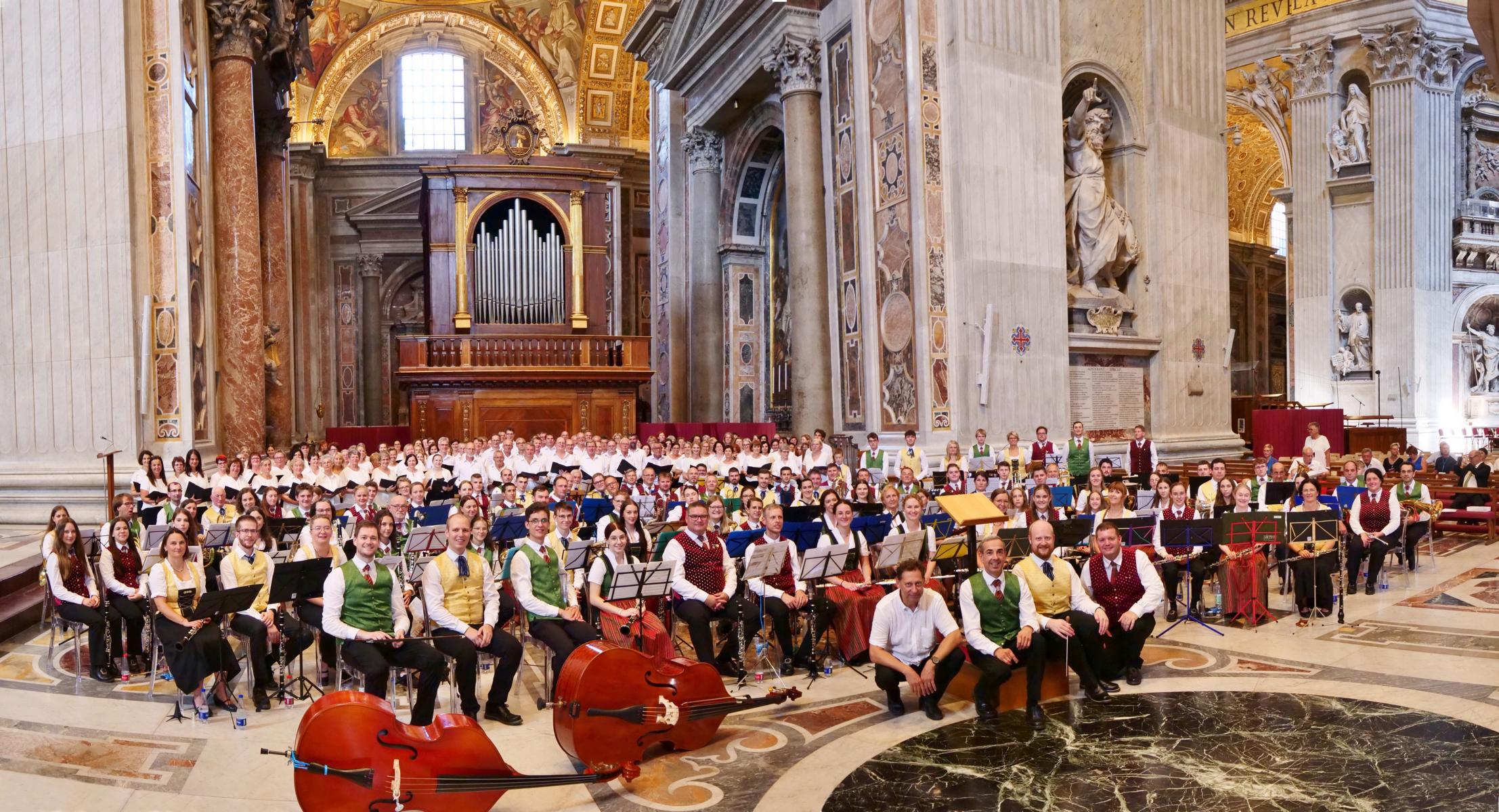 Den Heiligen Vater Papst Franziskus konnte man zwei Mal erleben. Am Sonntag, 25. August beim Angelus-Gebet um 12 Uhr Mittag und bei der Generalaudienz am Mittwoch, 28. August um 9 Uhr. Dabei überreichten die drei Kapellmeister Gottfried Rappersdorfer, Peter Brillinger (Bad Hall, Ried), Thomas Hörmann (Maria Neustift) und der Komponist Thomas Doss das Werk an Papst Franziskus.