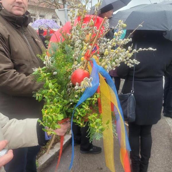 Regnerisch, sehr kalt und windig war das Wetter am Palmsonntag, den 29. März 2026. Trotzdem ließen sich die vielen Menschen und vor allem die Kinder nicht abhalten, bei der Marienkapelle auf den Pfarrer und die Musikkapelle zu warten. Ein fröhliches Lied begleitete die Palmweihe und die Musikkapelle brachte mit dem feierlichen Choral festliche Stimmung in den trüben Tag. Beim Gottesdienst gestaltete die Kinderliturgiegruppe die szenische Darstellung der Passion mit den Passionssymbolen.