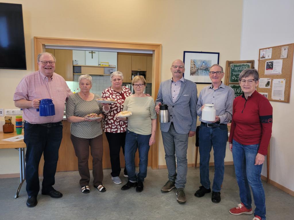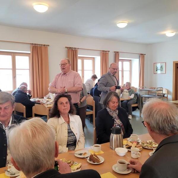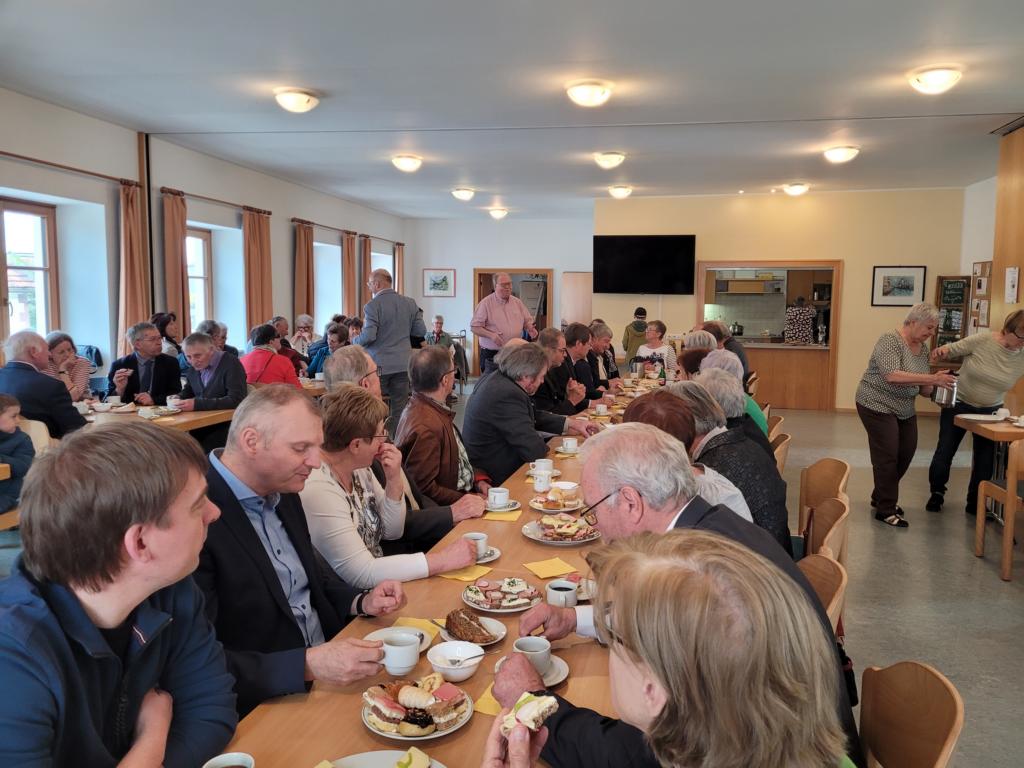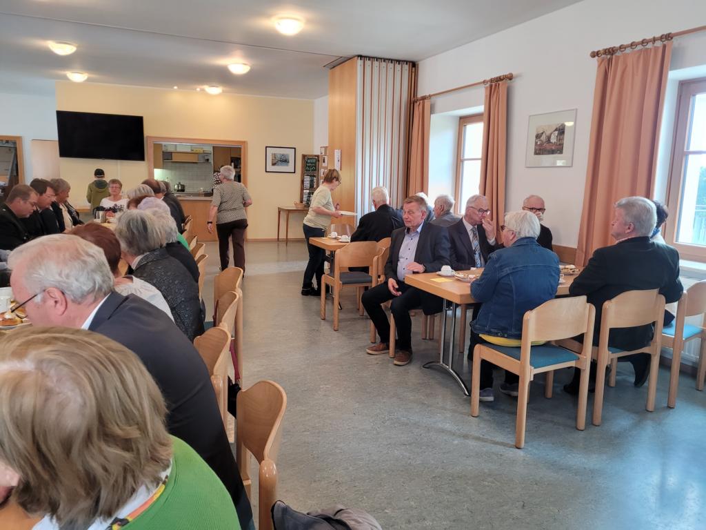 Zum Pfarrcafe nach dem Sonntagsgottesdienst luden die Pensionisten Waldneukirchens ein. Josef Weiermair begrüßte die vielen Gäste per Handschlag und bedankte sich bei den Kuchenbäckerinnen und den Spendern zum Wohle des Pfarrheims.