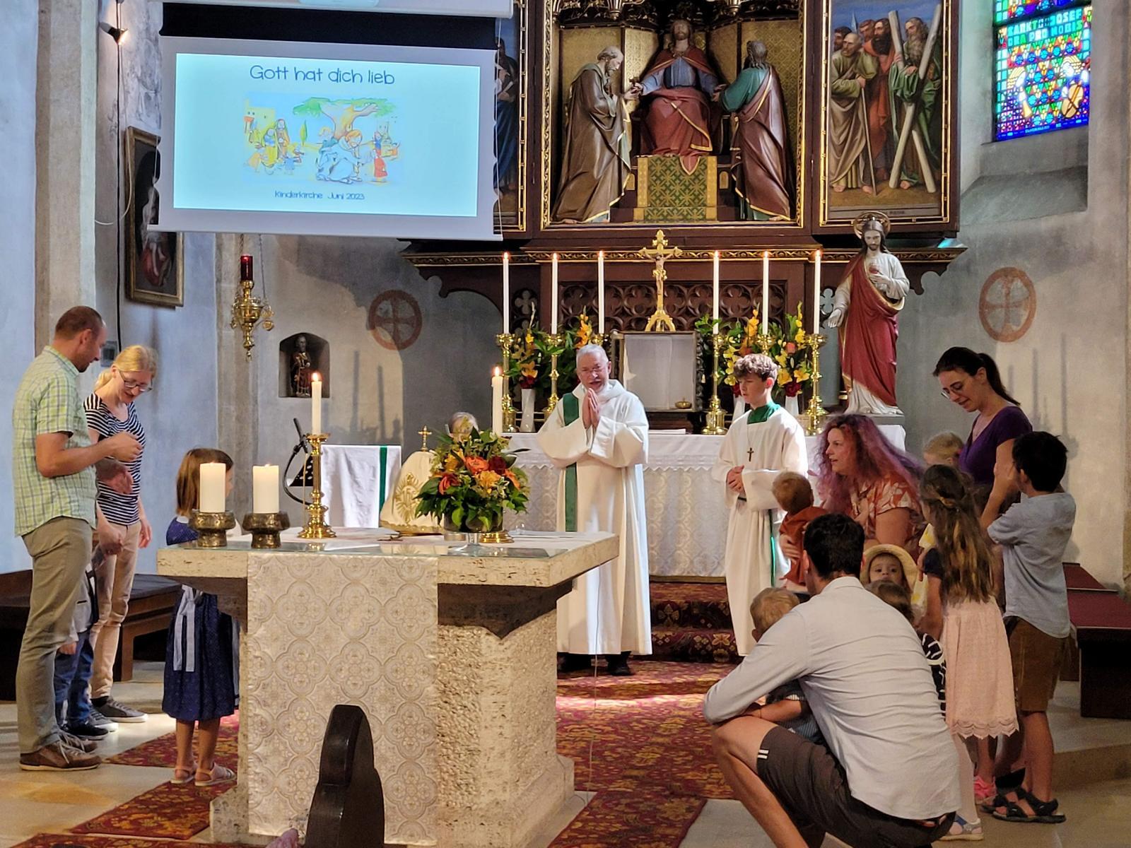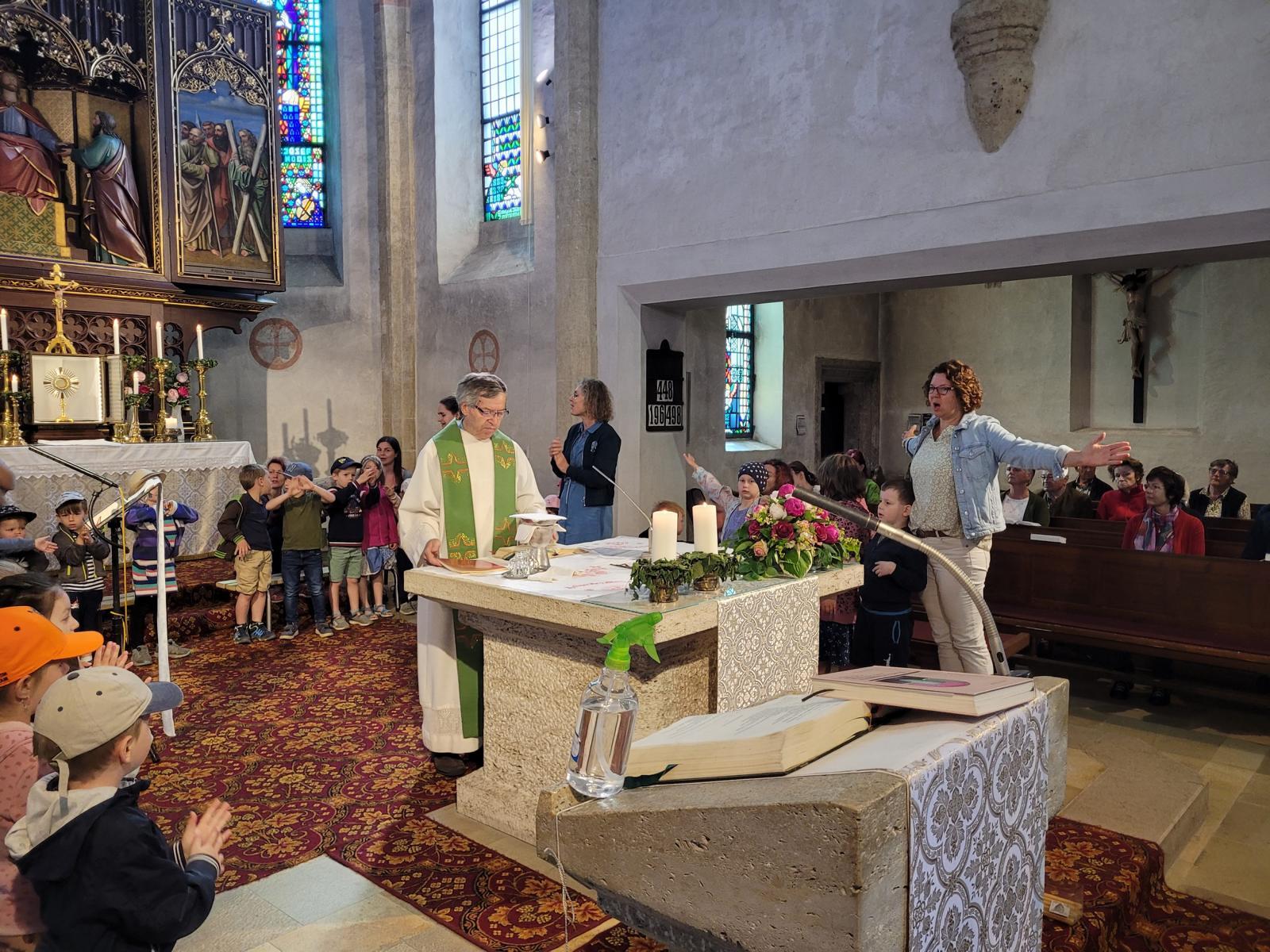 Lebendiger, rhythmischer und fröhlicher Familiengottesdienst am Sonntag, den 25. Juni 2023. Die Vorbereitung lag in den Händen der Kinderliturgiegruppe Feliggs, unterstützt von Laura und ihren Spielfiguren "Kiki" und "Kigo" (Kinderkirche und Kindergottesdienst), wo ganz kindgerecht die Botschaft über die Gemeinschaft Kirche zum Ausdruck kam.