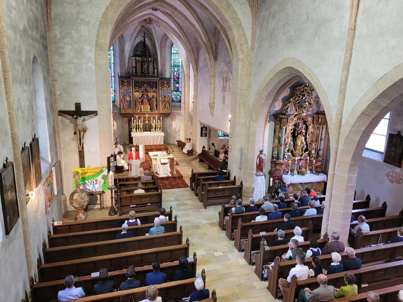 Das Patrozinium "Peter und Paul" wurde am Sonntag, den 2. Juli 2023 mit dem Festgottesdienst um 10 Uhr gefeiert. Der Kirchenchor begleitete die Liturgie mit schwungvollen Gesängen. Pfarrer Hofmann führte in der Predigt die Leistungen und die Bedeutung der Apostel Petrus und Paulus vor Augen. Die Bücherei feierte mit dem Bücherwurm den 35-jährigen Bestand (gegründet 1988) und Ernest Ulbrich berichtete zu den historischen Jubiläen "300 Jahre Kirchturmkuppel" und "100 Jahre Glocken" mit einer kurzen Ansprache.