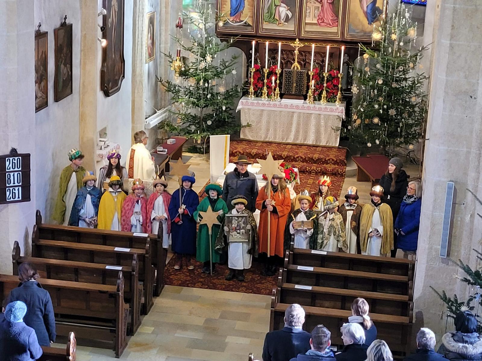 Zum Fest "Heilige 3 Könige" zogen die Sternsinger feierlich mit ihrem Halleluja-Ruf und dem Sternsingerlied in die Kirche ein. Den Festgottesdienst gestaltete der Kirchenchor mit der Pastoralmesse in G von Karl Kemptner und dem Ave Verum von Mozart.