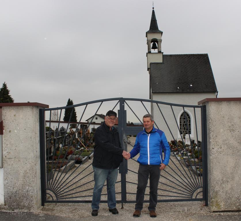 Rudi Schatz übergibt an Hans Pimminger die Aufgaben des Friedhofswärters