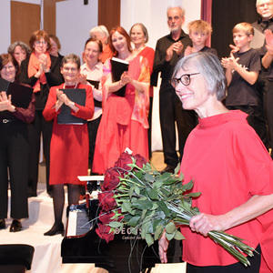 Zum Schluss erhielt Christine Neudorfer in Anspielung auf Millöckers Liedtext als Dankeschön von der Chorgemeinschaft einen Strauß dunkelroter Rosen überreicht.