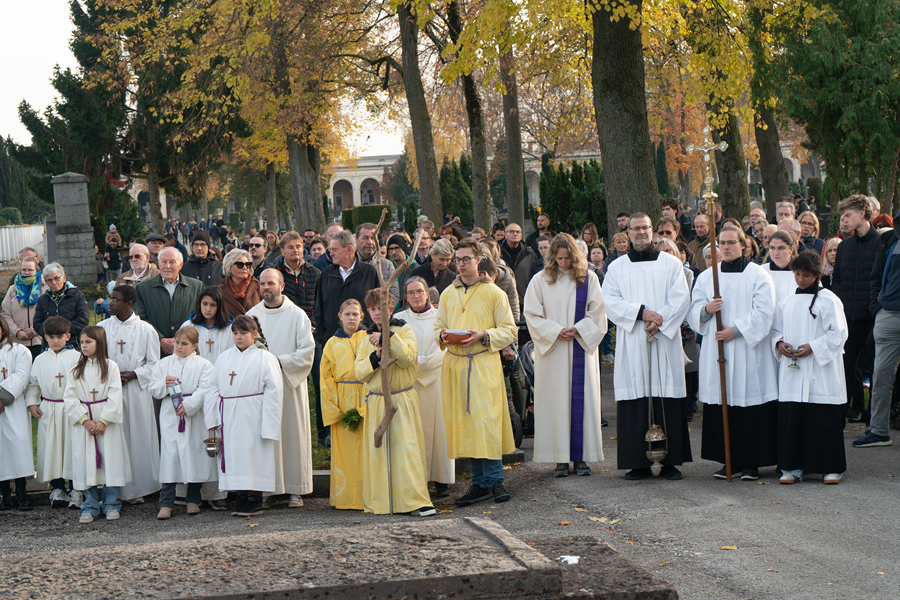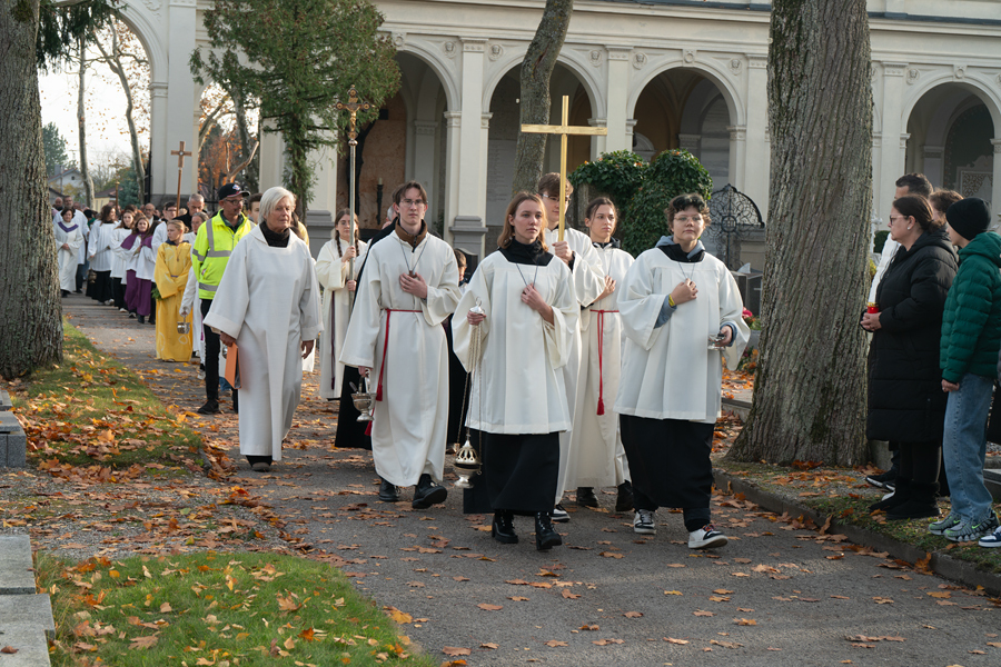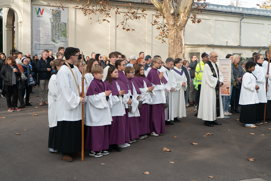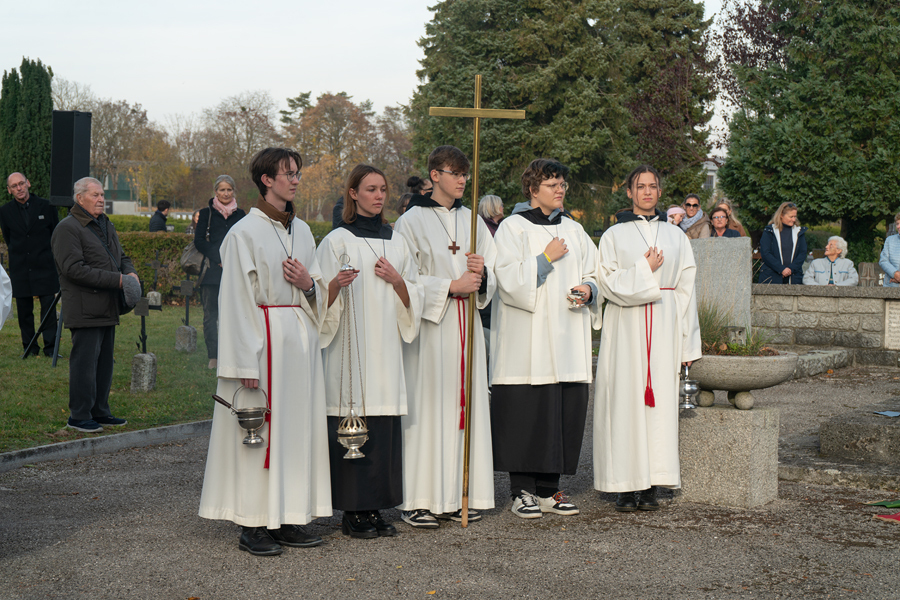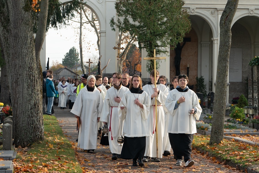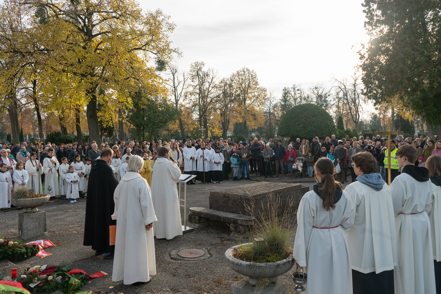Unser Friedhof ist auch schön. Die herbstlich leuchtenden Farben der Bäume und Sträucher, die bunten Blumen auf den Gräbern und am Abend das Lichtermeer der Kerzen. Buntheit, Farben und Licht sind Zeichen des Lebens, die in unserer Seele tröstend wirken.