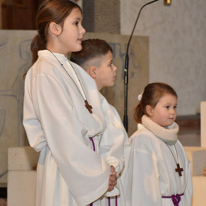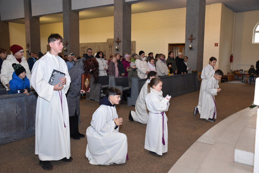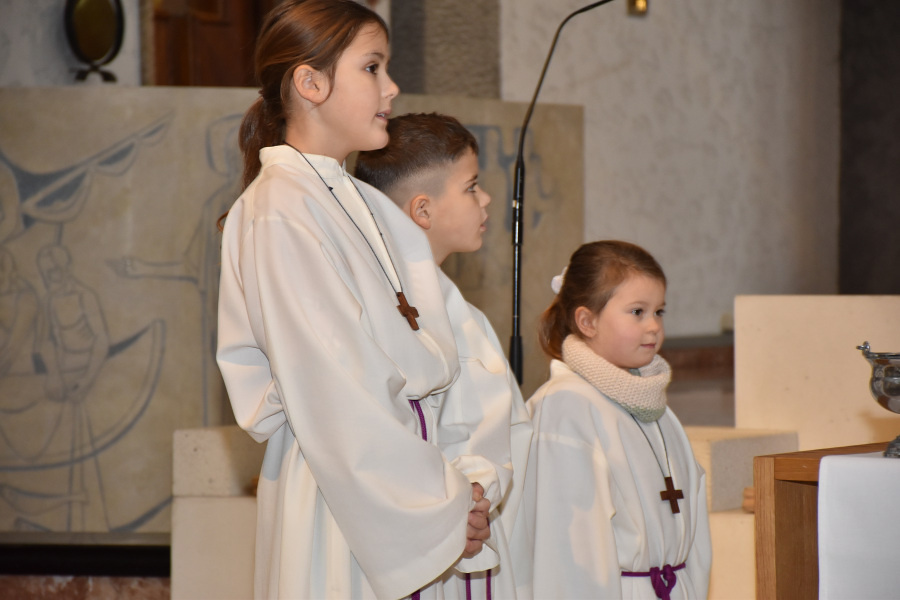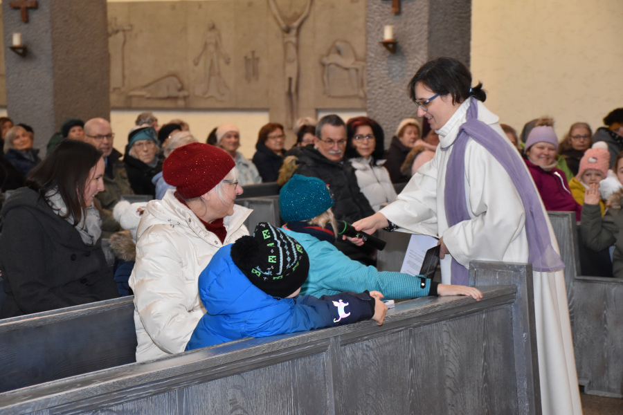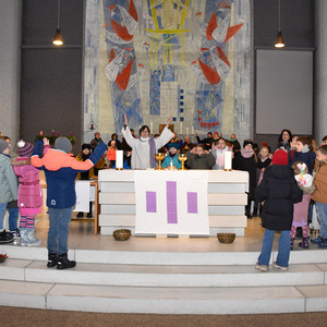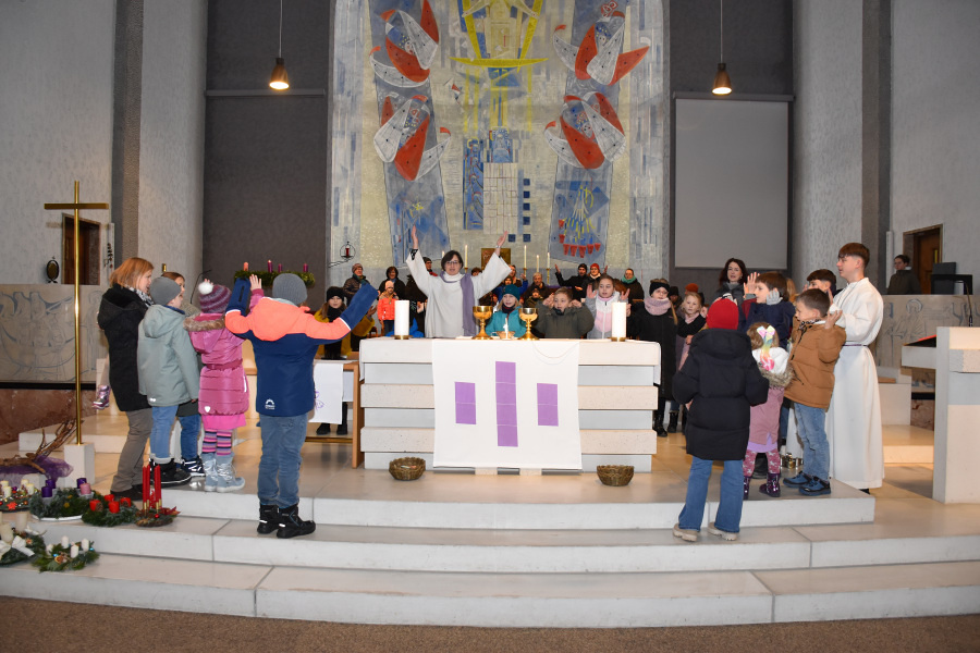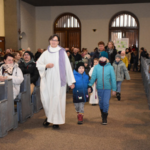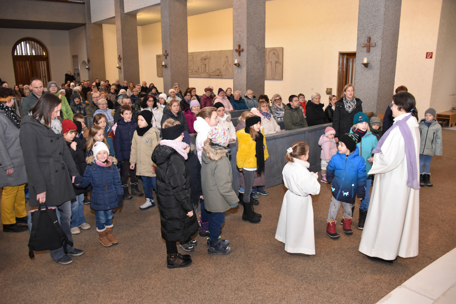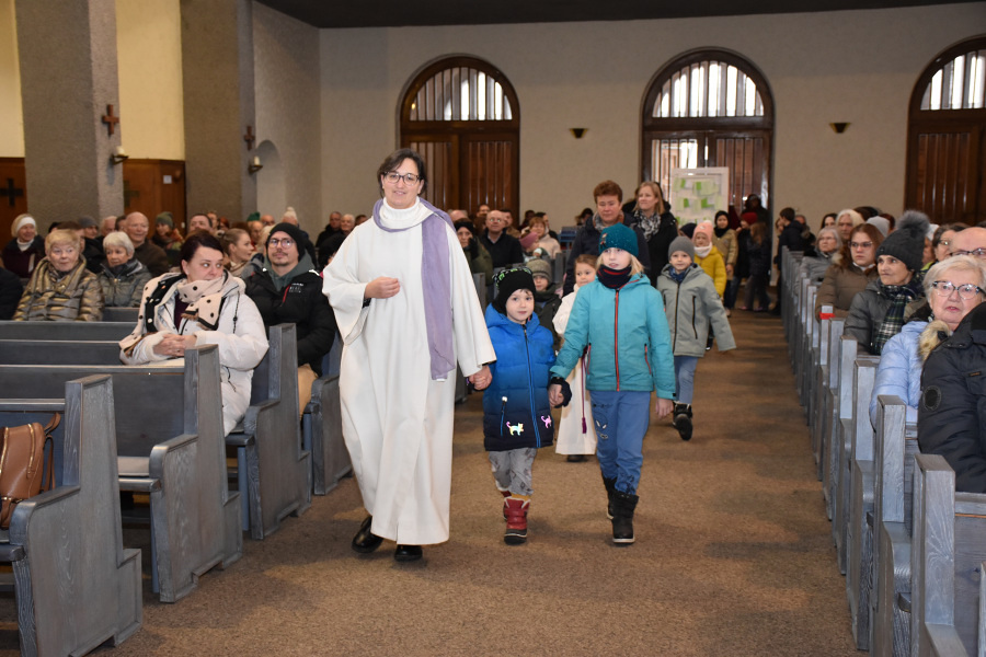 Das Thema des Familiengottesdienstes am ersten Adventsonntag lautet: „Mir selbst Herberge sein“. Am Beginn des Gottesdienstes gingen die Kinder in einem Umzug von der Kinderecke zum Altar.
