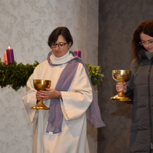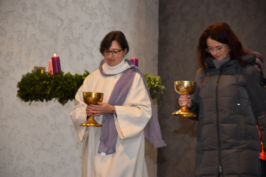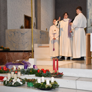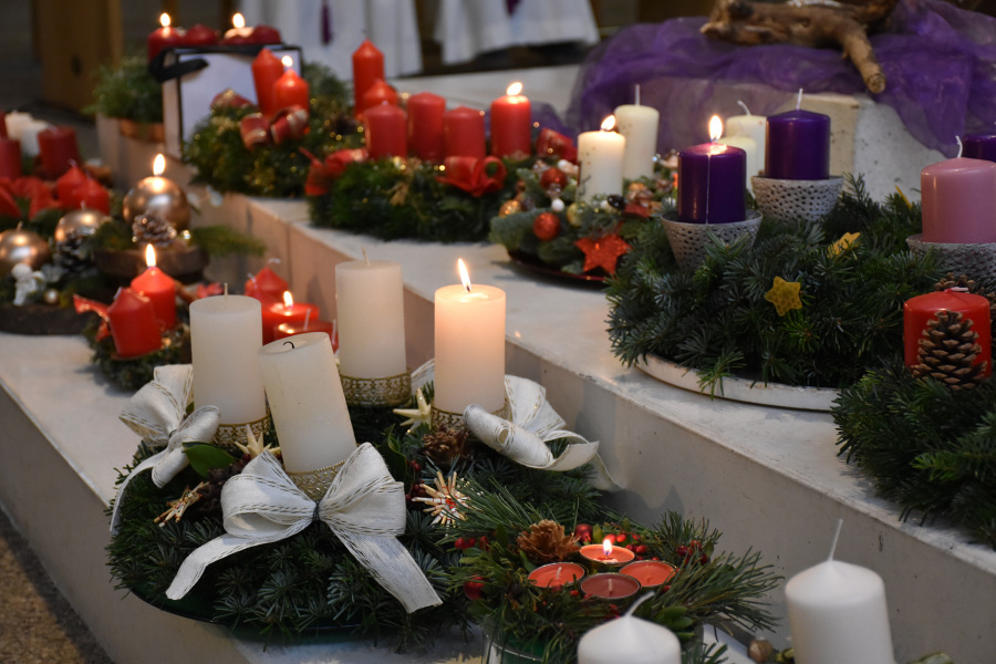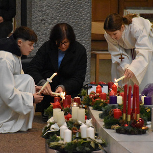 Was bedeutet der Advent? Wie kann ich Herberge für mich selbst sein? Wen lasse ich in mein Herz? Bereite ich Gott ein Heim in meinem Herzen? Die Kinder teilten ihre Gedanken darüber mit der Kirchengemeinde. Das "Vater unser" wurde gesungen, die Adventkränze wurden gesegnet.