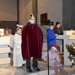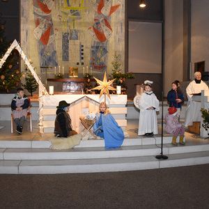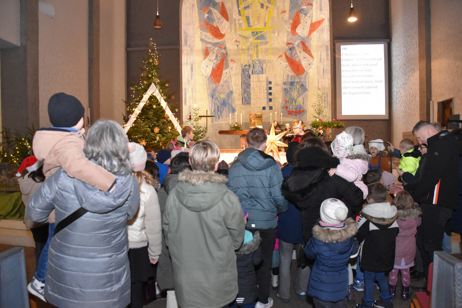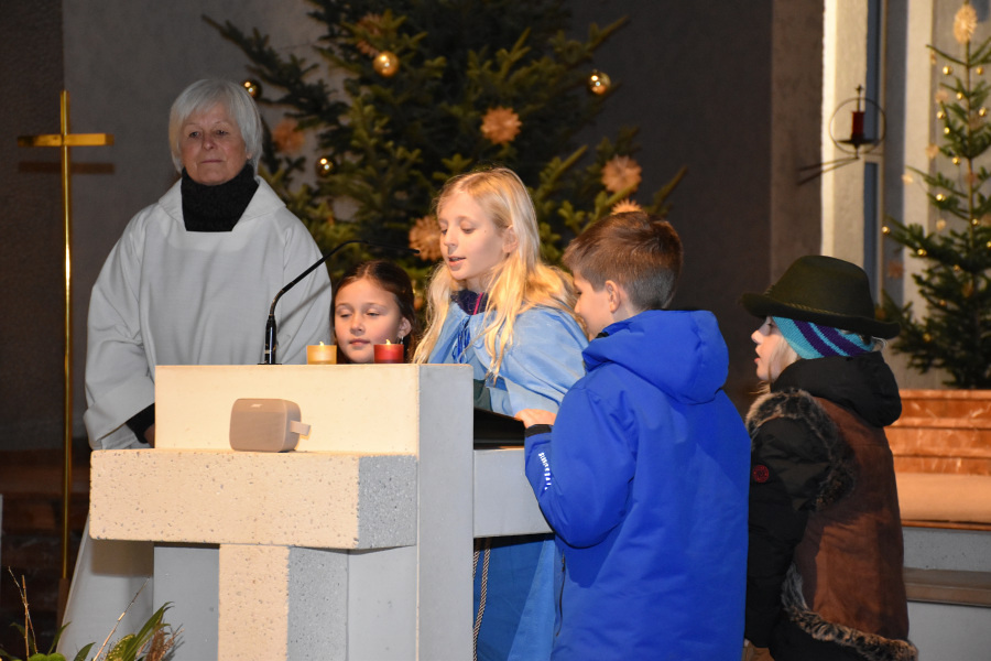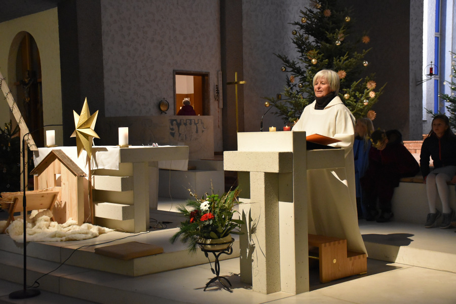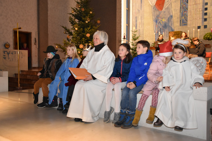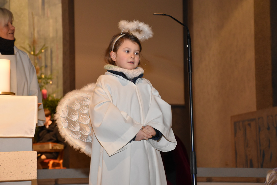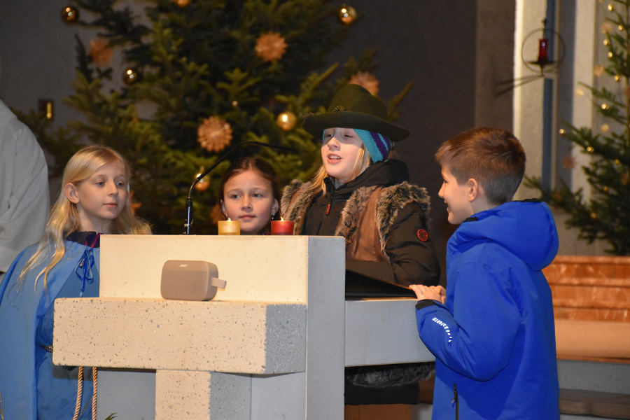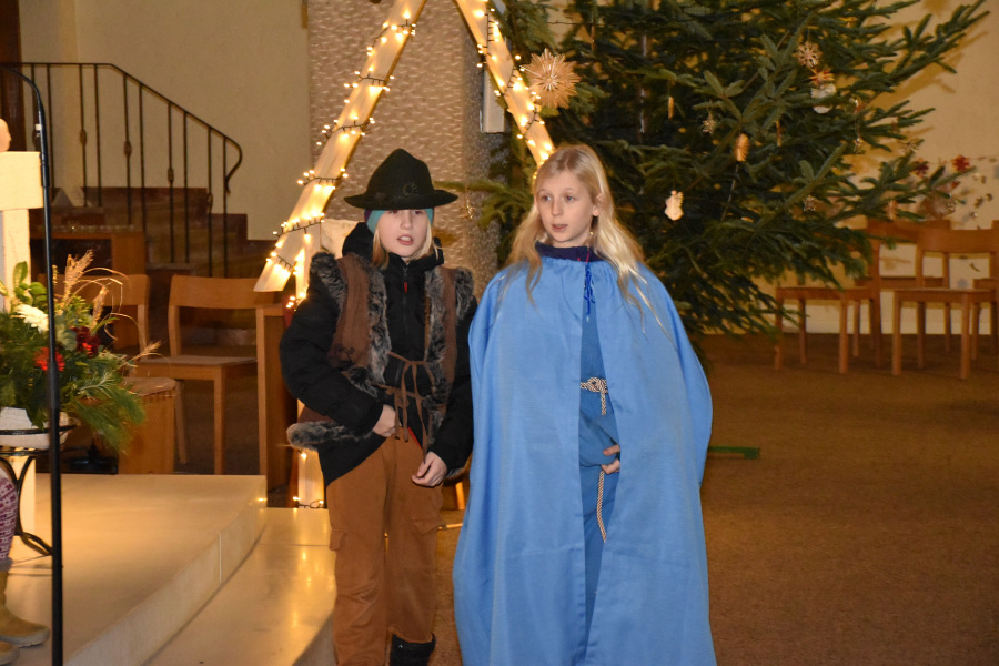 Die Geschichte von Maria und Josef, die nach Betlehem zur Volkszählung kamen und keine Herberge fanden, wurde von kleinen Schauspielern erzählt und gespielt. Die schwangere Maria und Josef mussten in einem Stall nächtigen, in dem nur eine Futterkrippe stand. Und genau dort bettete Maria ihren neugeborenen Sohn in Windeln gewickelt auf Stroh.
