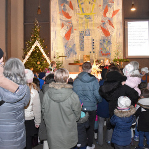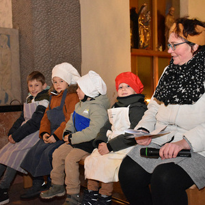 Im Anschluss an das Krippenspiel stellten die Kinder kleine Lichter zur Herberge, dass es ganz hell werde.