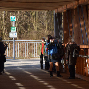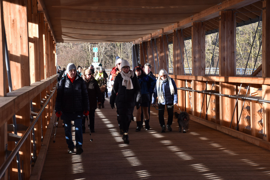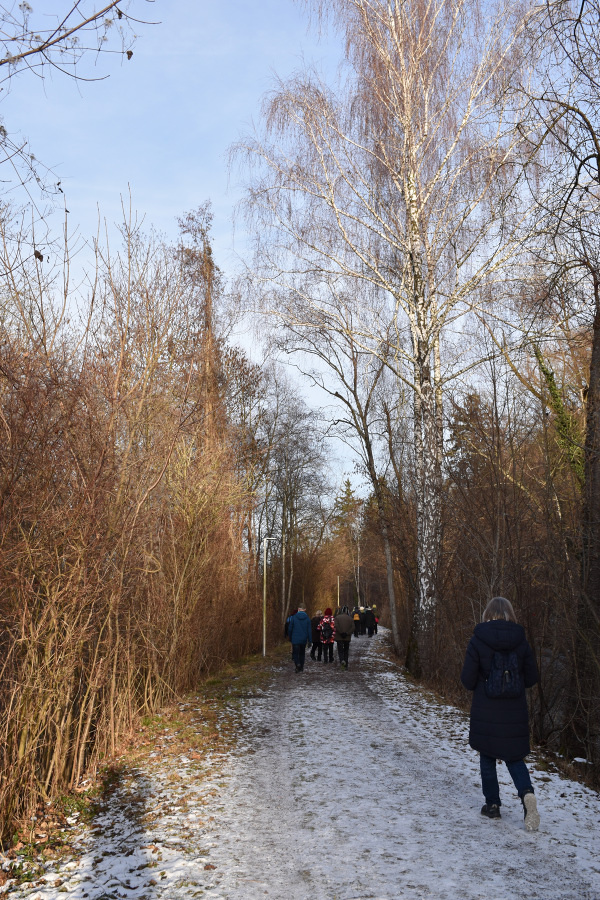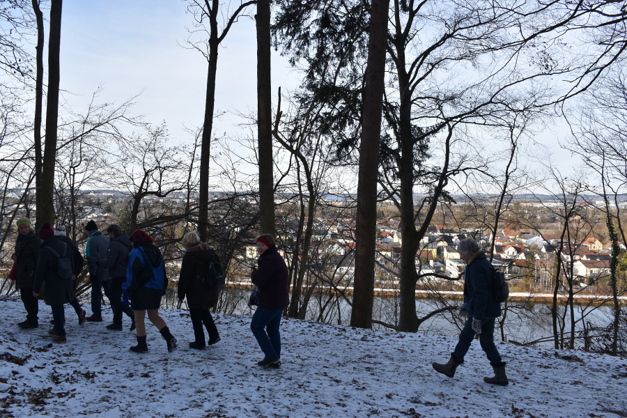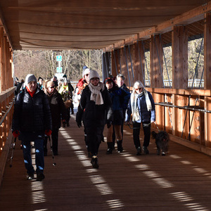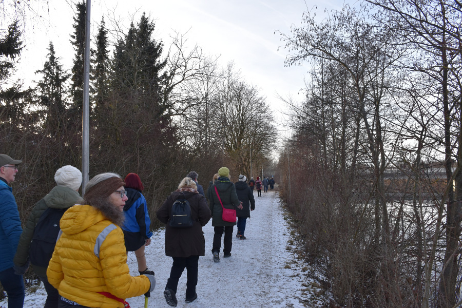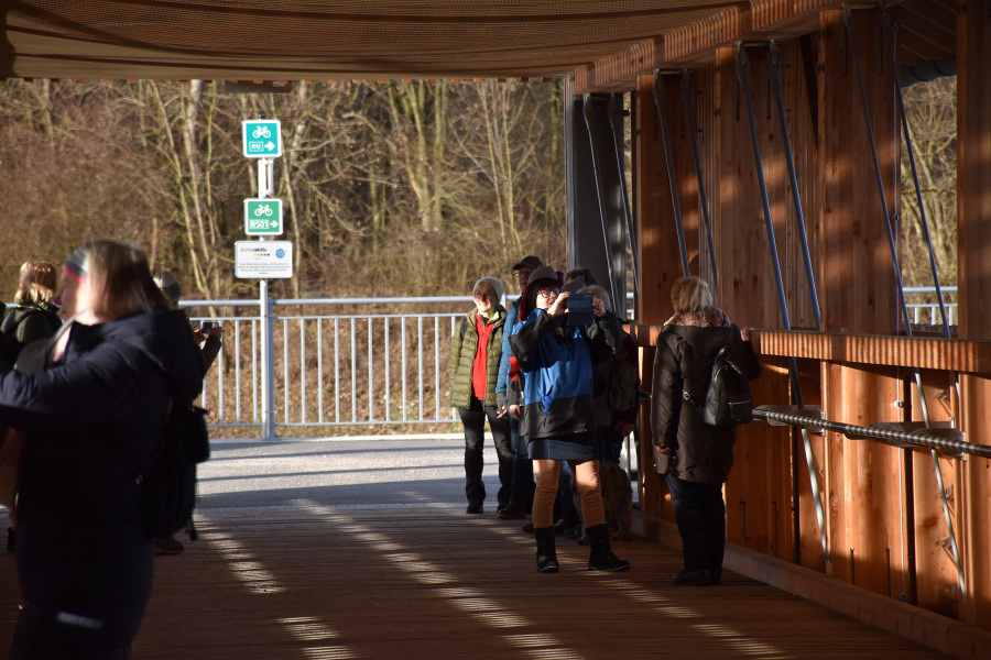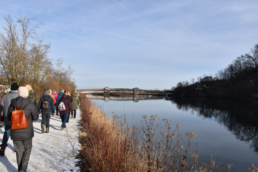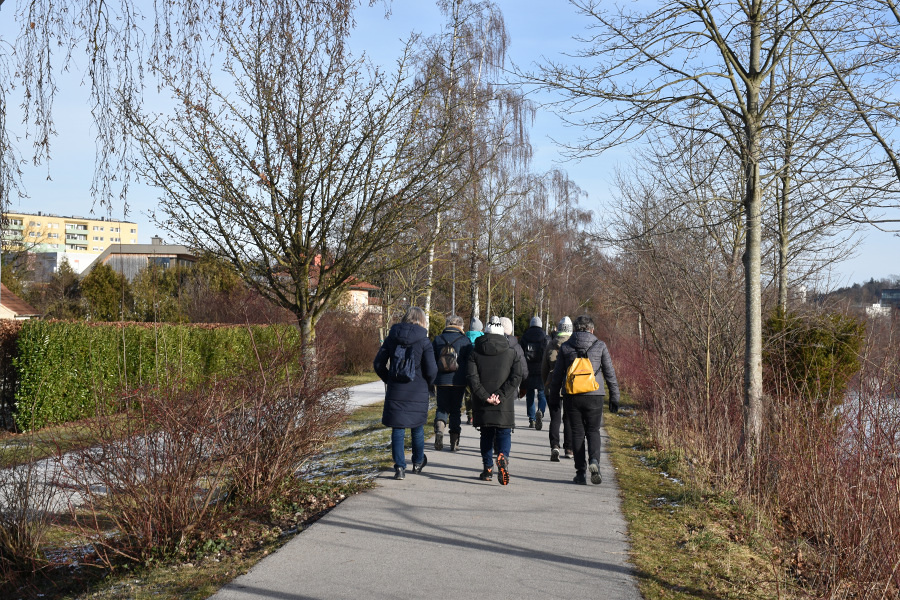 Vom Parkplatz in der Grießstraße wanderten wir, 25 Frauen/Männer plus einem Hund, der Traun entlang zur Römerbrücke, überquerten diese und marschierten auf der anderen Seite der Traun zurück, über den Trodatsteg zum Ausgangspunkt. Begleitet wurden wir von ungetrübtem Sonnenschein, Windstille, guter Laune umgeben von wunderbarer Landschaft.