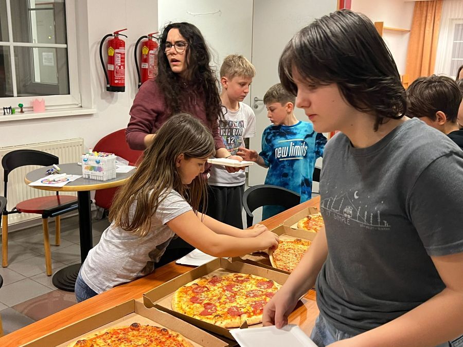 Zehn Kinder und einige (Hilfs-)Gruppenleiter*innen starteten am Nachmittag das Programm mit einigen neuen Turnsaalspielen. Anschließend konnten sich die Kinder frei beschäftigen und verbrachten ihre Zeit mit Bügelperlen, Fingerstricken sowie Ball- und Brettspielen. Abends gab es Pizza und somit die langersehnte Belohnung für das „Einsackerln“ der Kuverts im Zuge der Sternsingeraktion, das wie jedes Jahr von den Kindern in den Heimstunden durchgeführt wurde. Vor dem (versuchten) Einschlafen schauten wir noch gemeinsam einen Film und am nächsten morgen gab es ein gesundes Frühstück, bevor die Eltern ihre Kinder gegen elf Uhr wieder abholten.