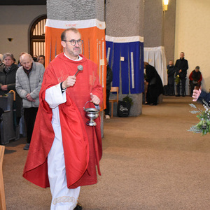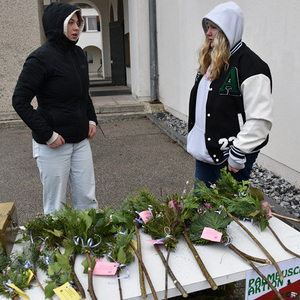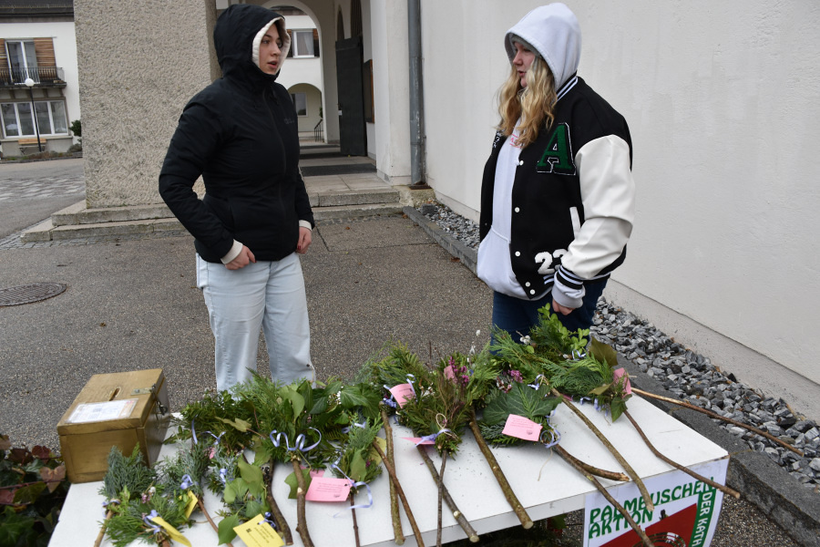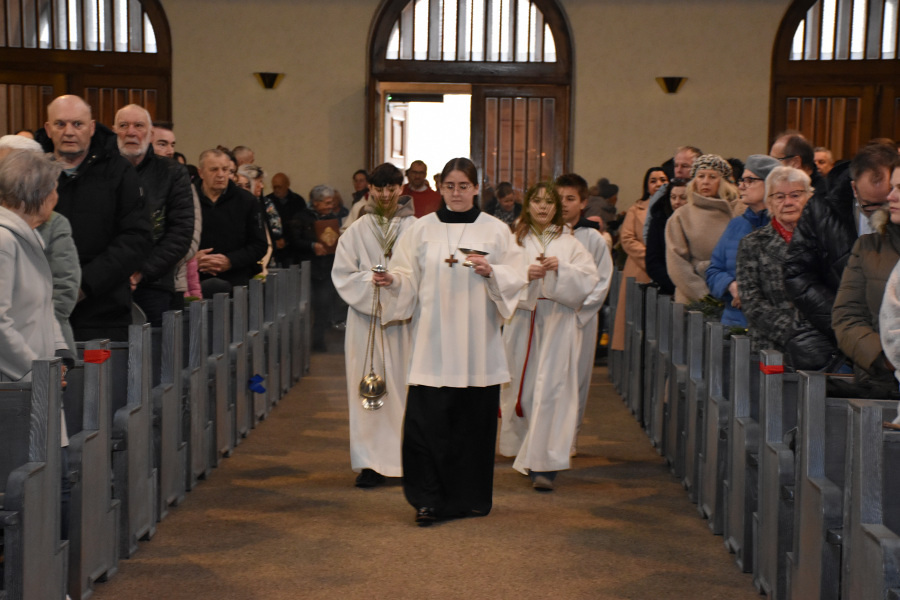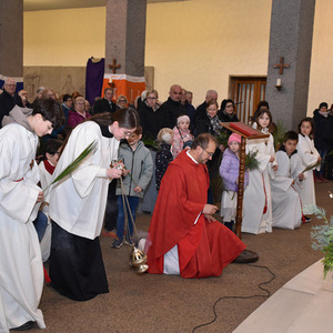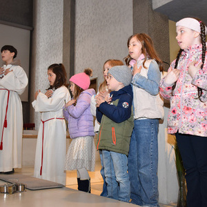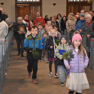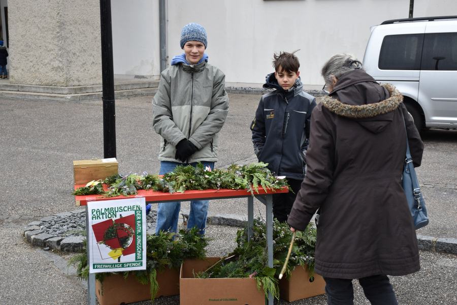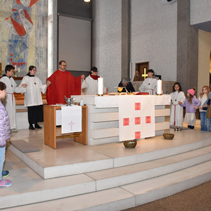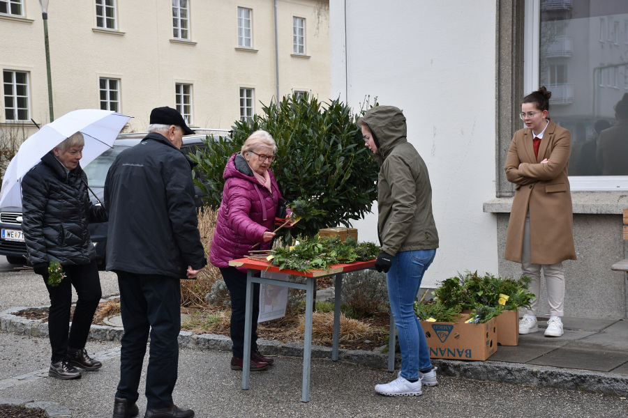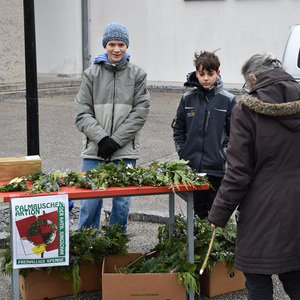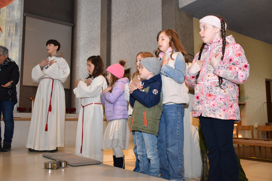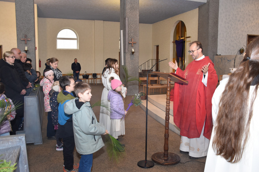 Gemeinsam mit dem Pfarrer und den Ministranten zogen die Kinder in die Kirche ein. Anschließend wurden die Palmzweige und die Palmbuschen geseget.