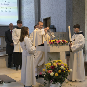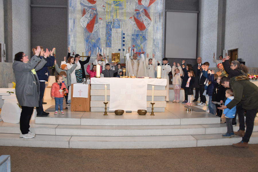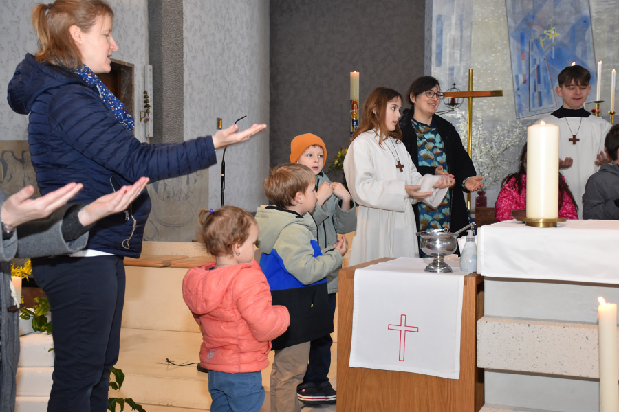 Anschließend gingen wir wieder in die Kirche und stellten uns zum gemeinsamen Vater unser um den Altar.