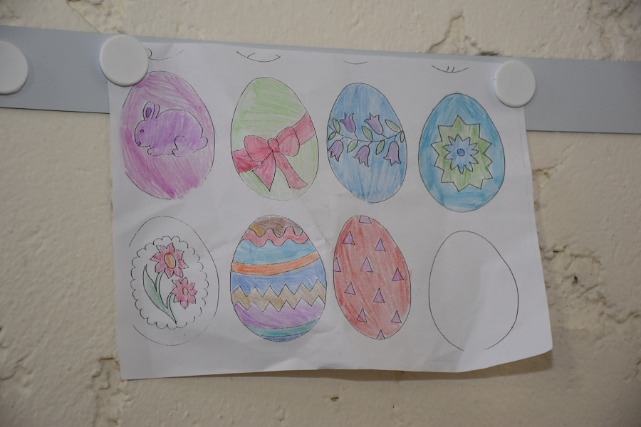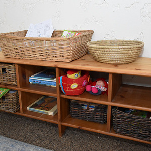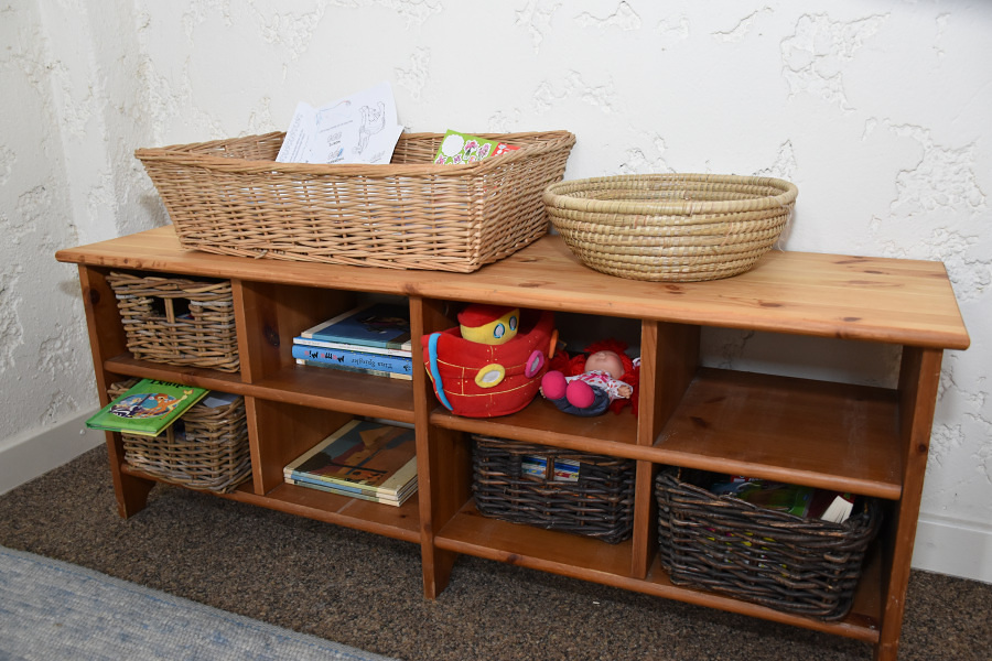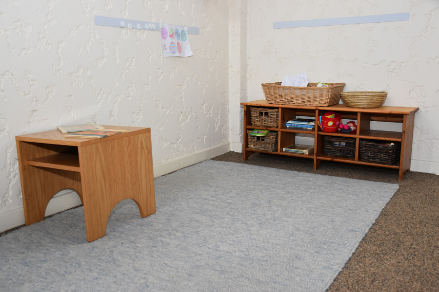 Für kleinere Kinder ist es schwierig, lange in den Kirchenbänken zu sitzen. Daher steht links vom Altarraum eine Kinderecke zur Verfügung. Dort können die Kleinen malen, Bilderbücher anschauen und sich während des Gottesdienstes wohl fühlen. Auch im Raum der Stille steht den Kleinen ein Tisch mit Mandalas und Stiften zum Anmalen zur Verfügung. So können die Eltern entspannen, während die Kinder sich anderweitig beschäftigen