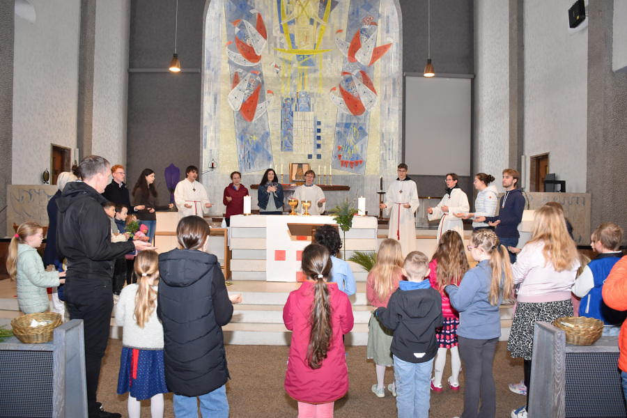 Der Gottesdienst am Palmsonntag wird als Familienmesse gestaltet. Am Ostersonntag gibt es wieder ein Kinderelement im Pfarrheim und im Anschluss an den Gottesdienst eine Ostereiersuche im Pfarrgarten.