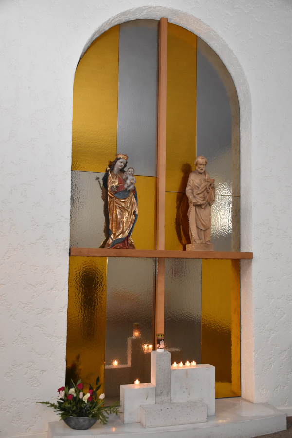 Im rechten Seitenschiff steht eine Nachbildung der Gnadenmutter von Maria Schauersberg mit dem Hl. Josef von Engelbert Burgstaller (Vater des Erwin Burgstaller, Schöpfer des Kreuzwegs).
