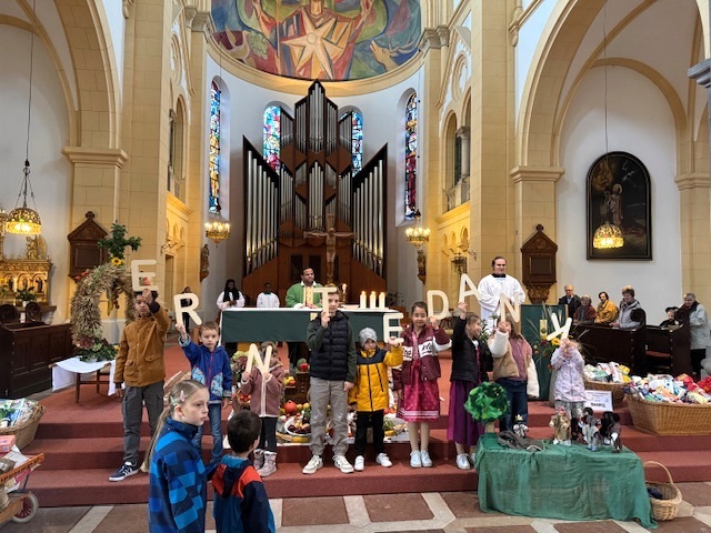 Am Sonntag, 5. Oktober 2025, luden wir um 09:30 Uhr unsere Kinder mit ihren Familien zum Erntedankfest in unsere Herz Jesu Kirche ein.
