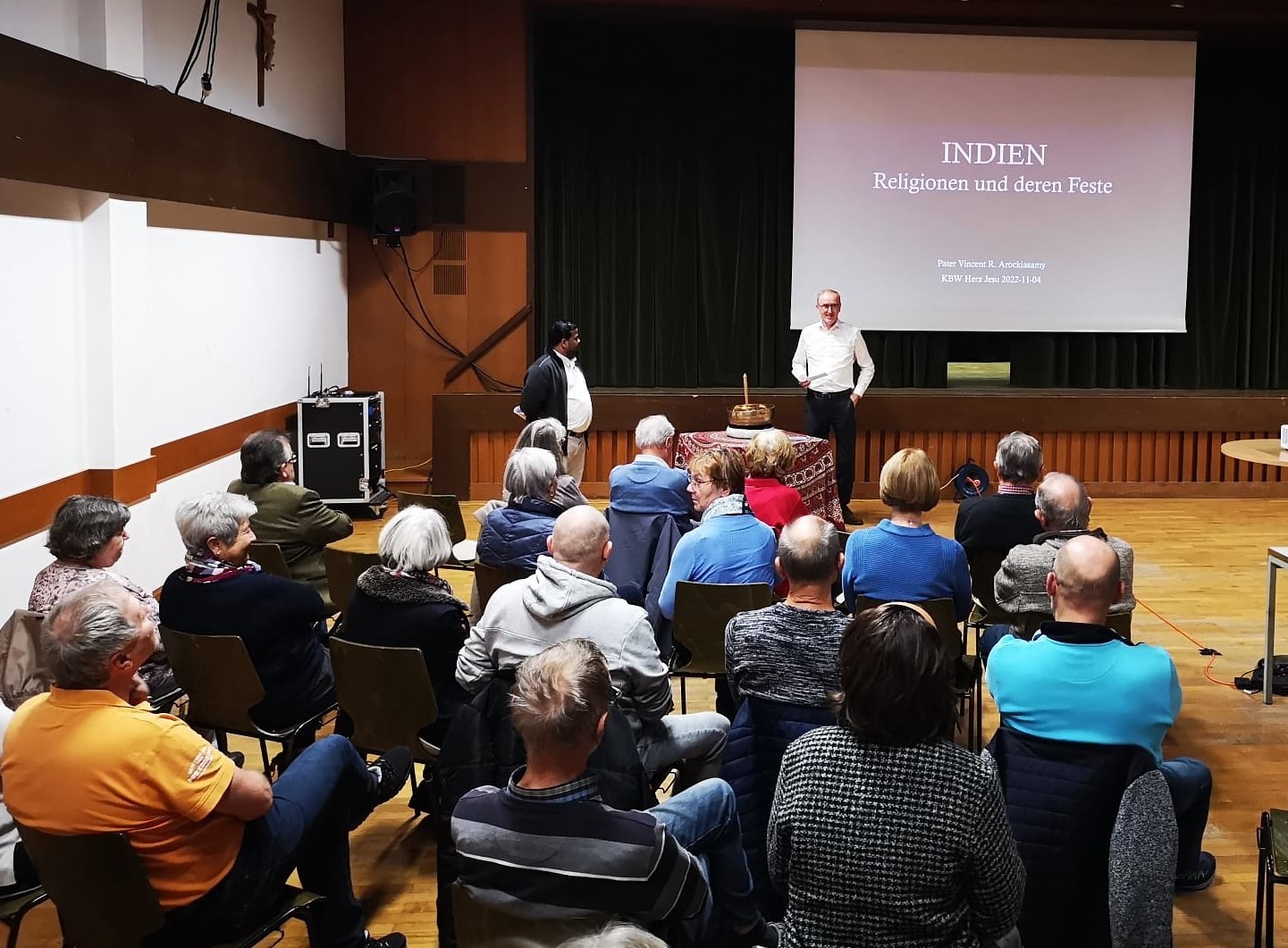 Der Vortrag "Indien-Religionen und deren Feste" lockte am 4. November 2022 wieder ca. 50 Teilnehmer in den Pfarrsaal der Pfarre Wels Herz-Jesu. Pater Vincent, selbst Inder, informierte über die drei Relgionen Hinduismus, Bhuddismus und Sikhismus, die alle in Indien entstanden sind.