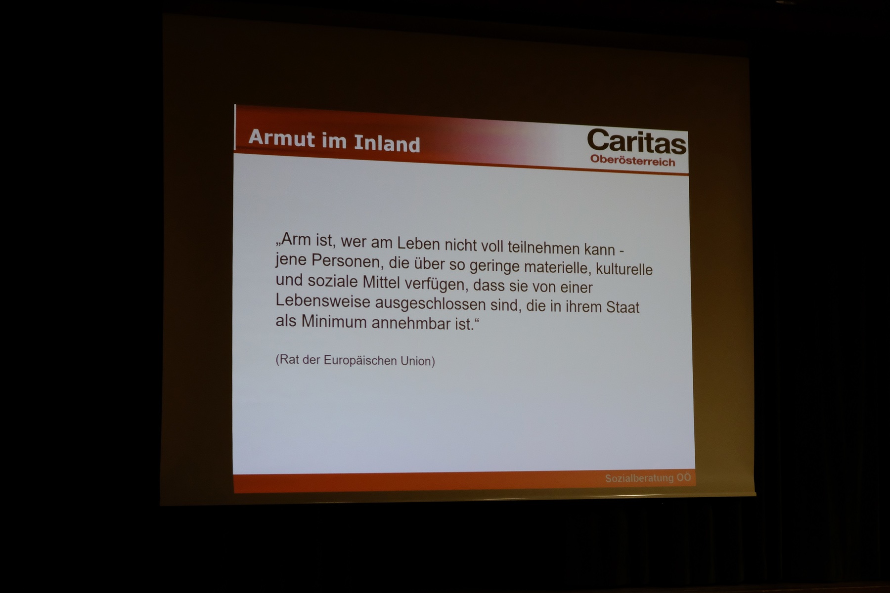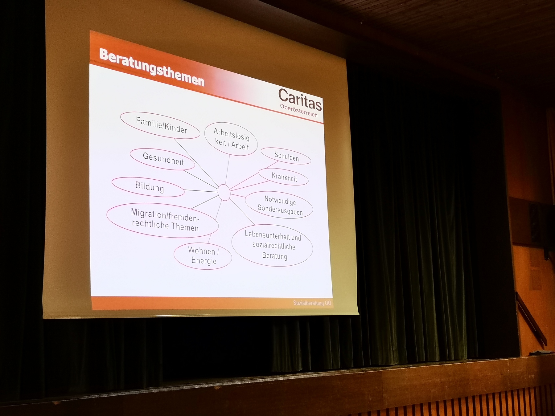 Übersichtlich und anschaulich brachte Mag. Michael Felder als Leiter der Caritas Oberösterreich im ersten Teil den Anwesenden die Tätigkeitsfelder und Hilfsmöglichkeiten nahe und wies auf aktuelle Herausforderungen wie den Anstieg der Lebenskosten, Zunahme psychischer Erkrankungen, Verschuldung etc. hin.