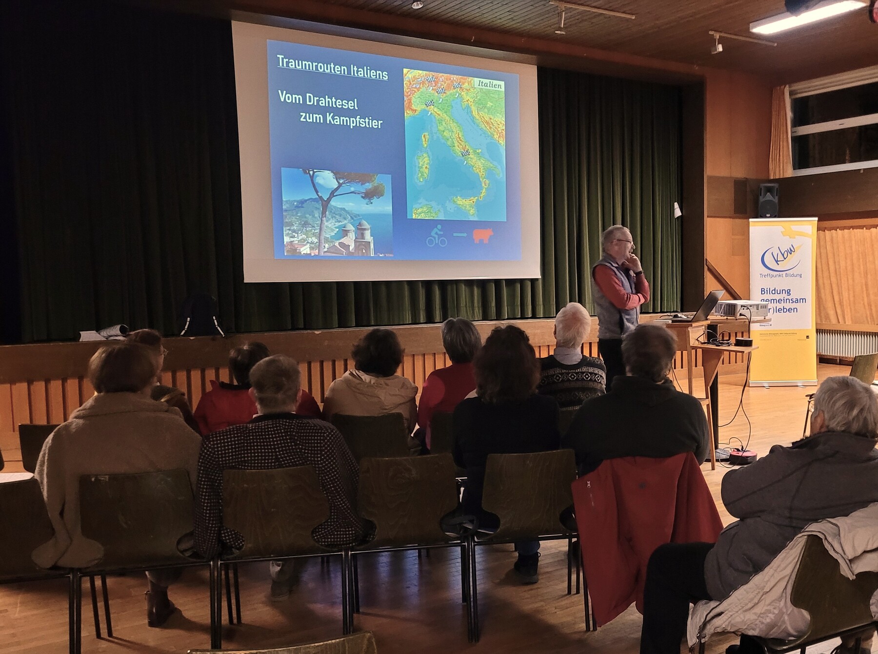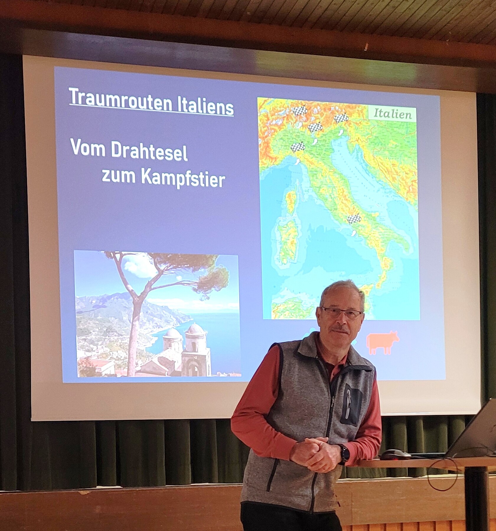 In seinem Vortrag „Traumrouten Italiens“ präsentierte er eindrucksvolle Bilder und persönliche Eindrücke von malerischen Küstenstraßen, historischen Städten und abwechslungsreichen Landschaften.