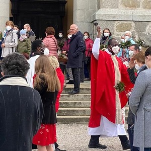 Zum ersten Mal waren alle Mitfeiernden zur Segnung der Palmzweige im Freien vor der Kirche eingeladen. Vielen Dank für das Aufeinander-Rücksicht-nehmen!