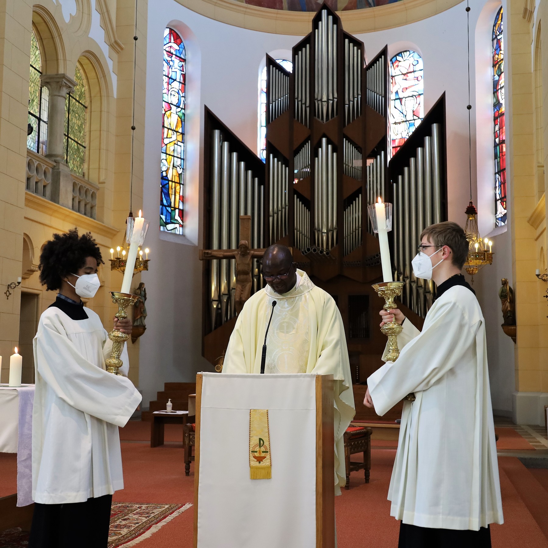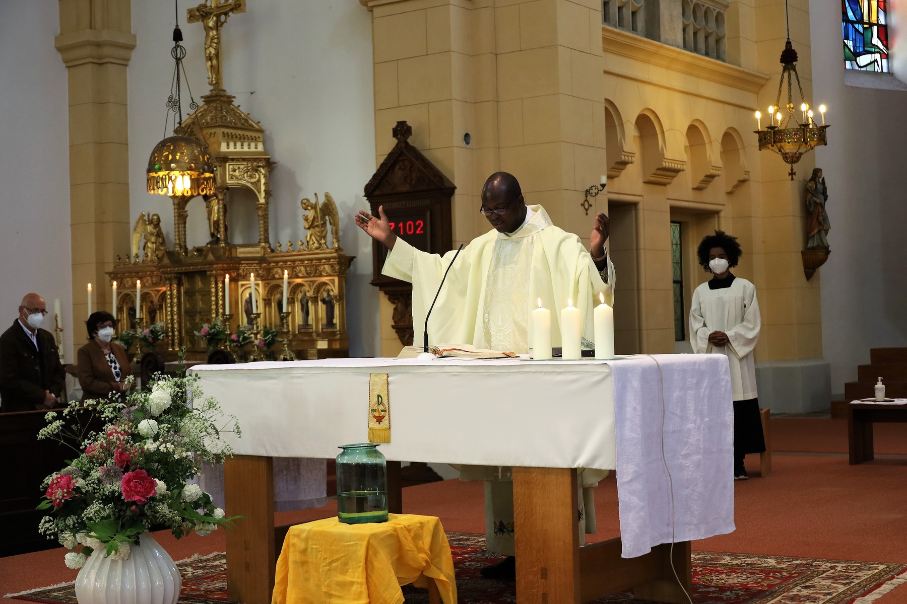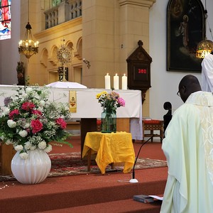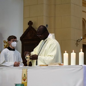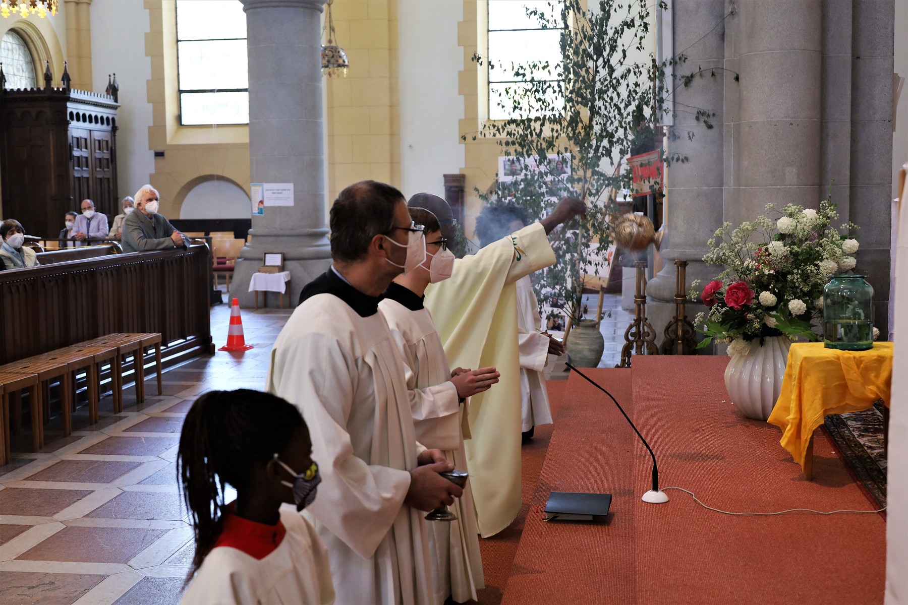 Auch heuer brachten Kinder Blumen mit und dankten Gott. Anstatt durch die Straßen der Neustadt zu ziehen, hielten wir in der Kirche vor dem Allerheiligsten inne.