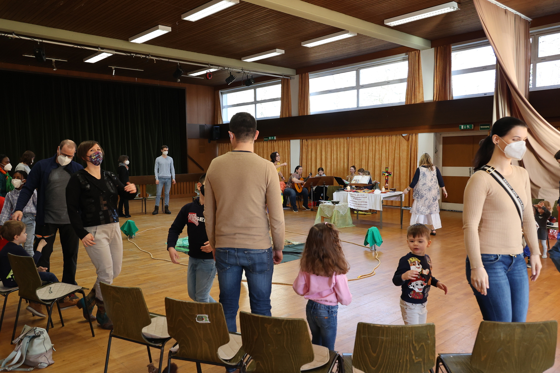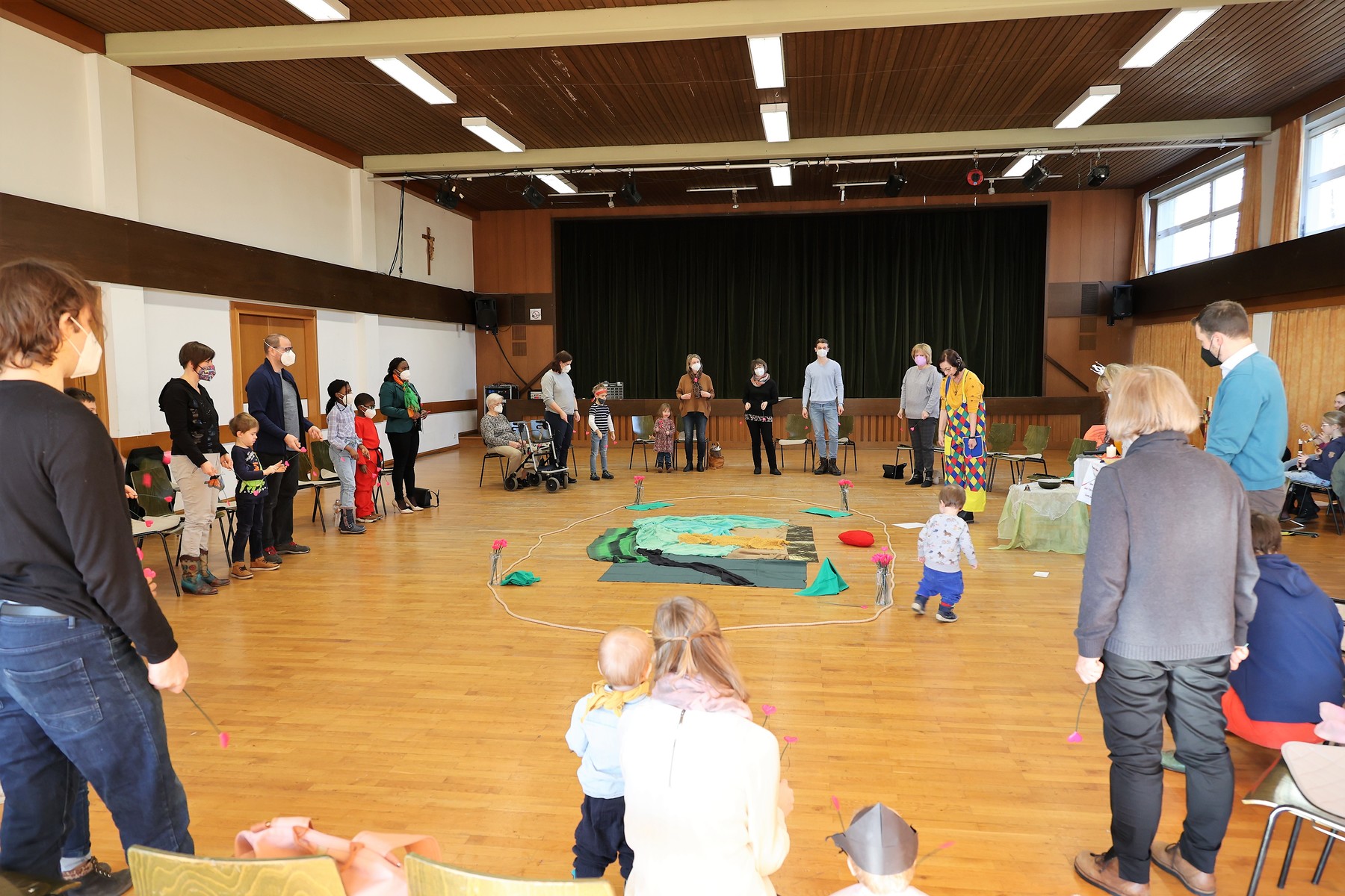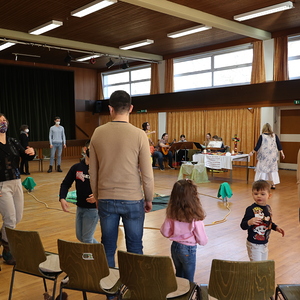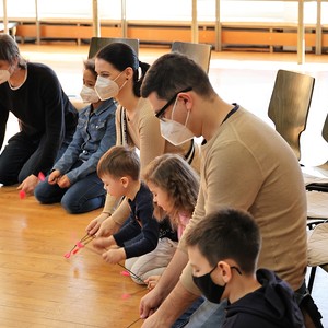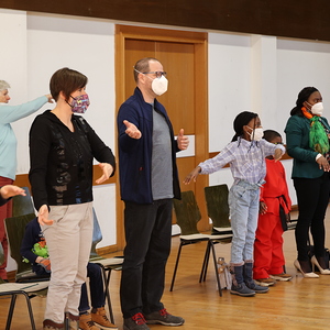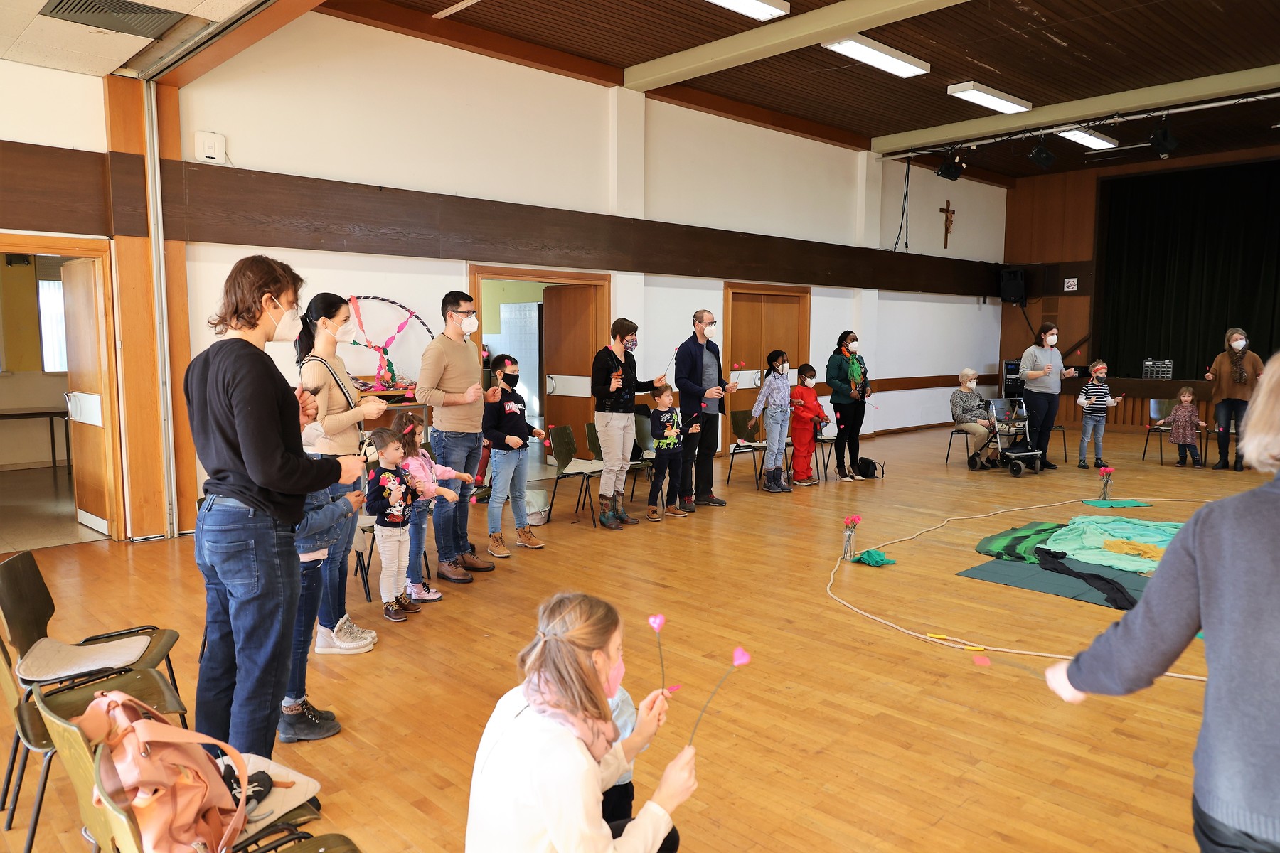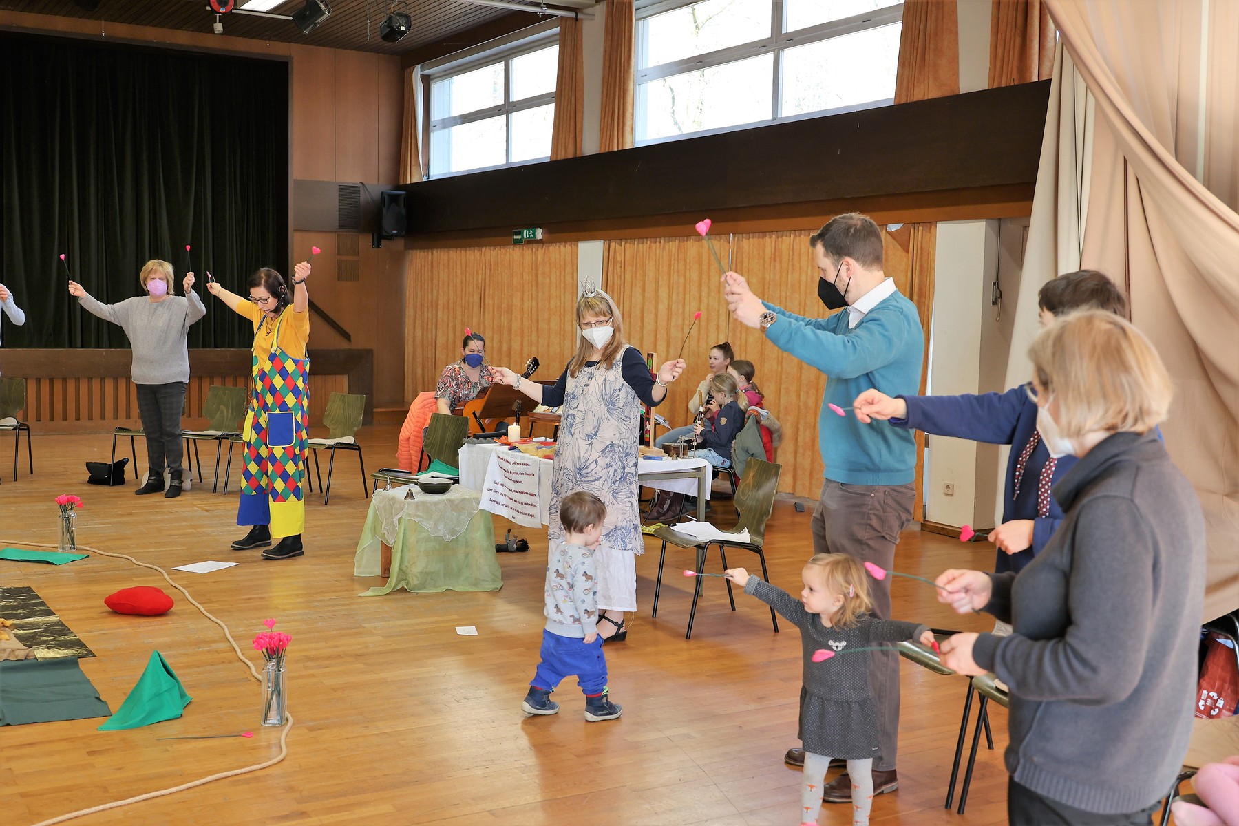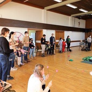 Schwungvoll und lustig feierten Familien am 13. Februar 2022 Kindergottesdienst im Pfarrheim zum Thema "Ein Herz voller Liebe". Passend zum Fasching wurde den Kindern zum Abschluss der "Konfetti-Segen" zugesprochen.