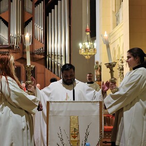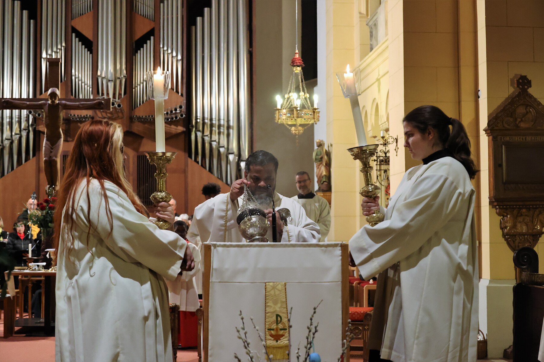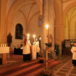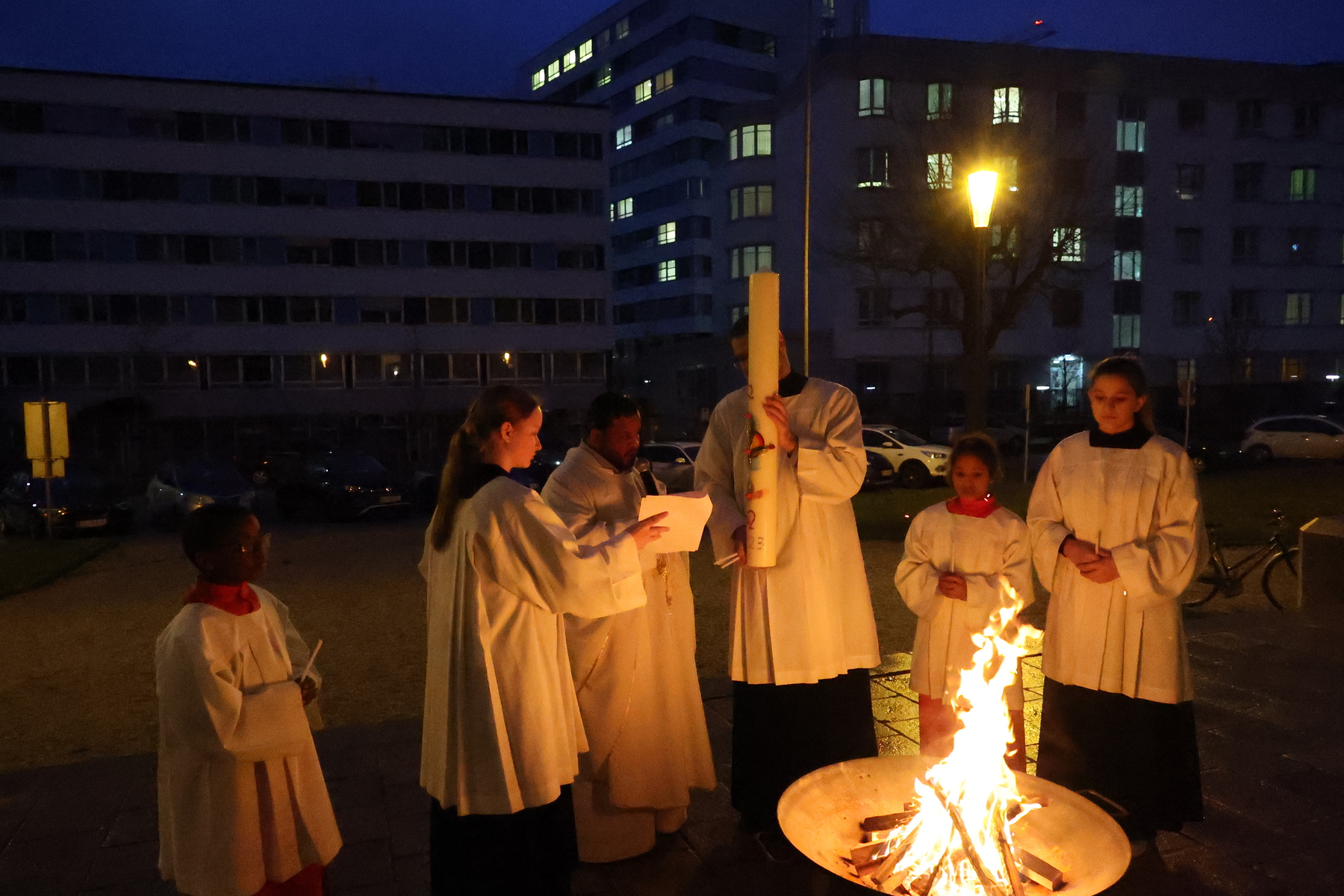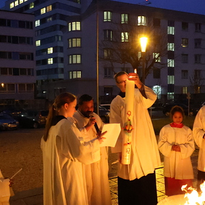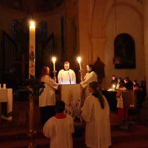 Etwas länger, aber umso festlicher mit beinahe himmlischen Klängen feierten wir heuer die Osternacht; jene selige Nacht, in der Christus die Ketten des Todes zerbrach und aus der Tiefe als Sieger emporstieg - wie es im Exsultet besungen wird.