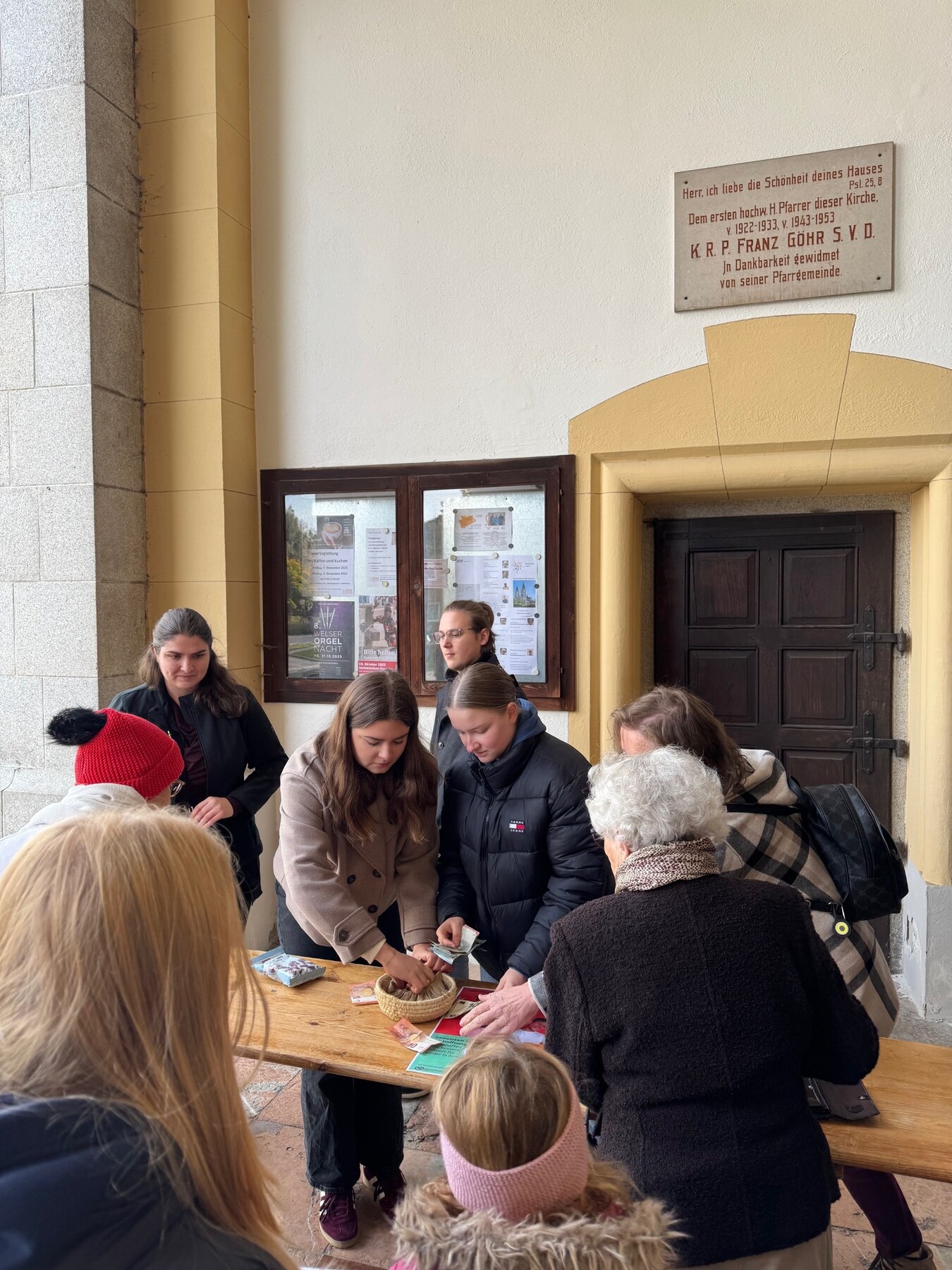 Nach dem Gottesdienst boten Jugendliche Schokopralinen und Happy blue Chips zum Kauf an.