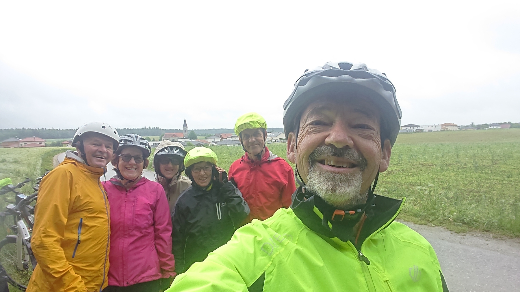 Auch zehn RadfahrerInnen machten sich auf den Weg zum Wallfahrtsziel. Manfred Gatterbauer brachte sie durchnässt, aber sicher zur Pfarrkirche Eggendorf, die der Gottesmutter Maria geweiht ist.