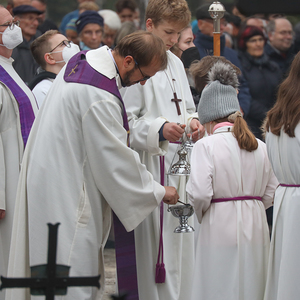 Nach der Prozession samt kurzer Andacht beim Kriegerdenkmal wurden in traditioneller Art und Weise die Gräber mit Weihwasser und Weihrauch gesegnet.