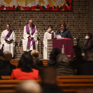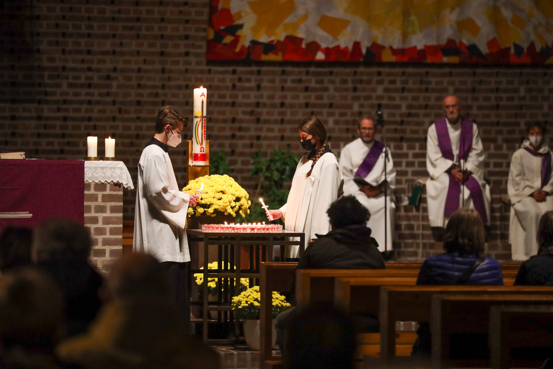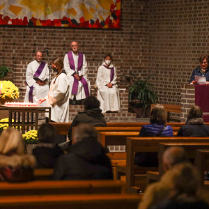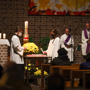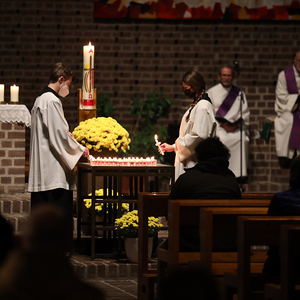 In andächtiger Weise wurden die Namen der verstorbenen Pfarrzugehörigen gedacht, die im vergangenen Jahr zu Grabe getragen wurden. Dabei wurden die Namen verlesen und für jede einzelne oder jeden einzelnen eine Gedenkkerze entzündet.
