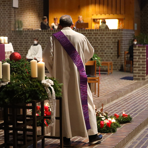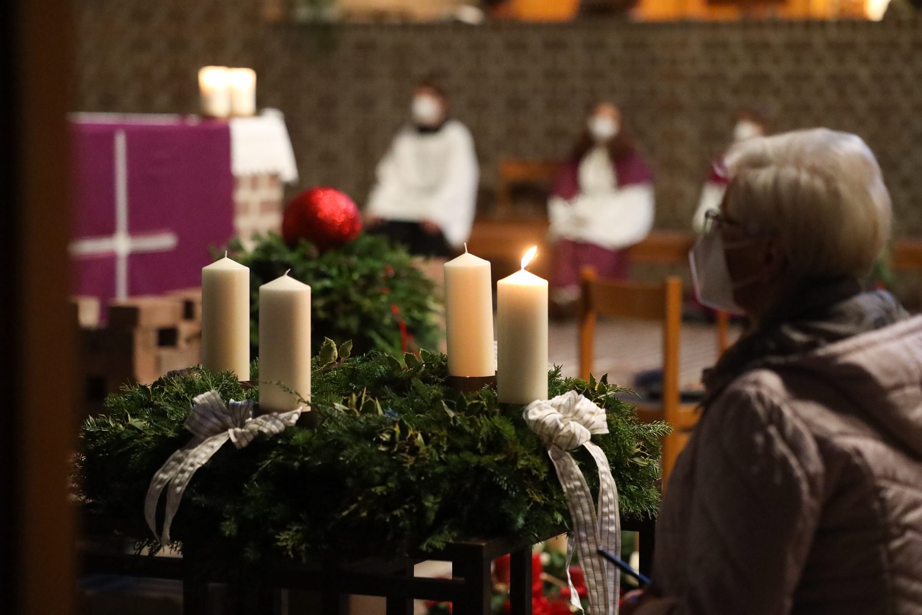 Nachdem unsere Mesnerin die erste Kerze am Adventkranz in der Kirche entzündet hatte und auch an den mitgebrachten Adventkränzen jeweils die erste Kerze entzündet wurde, kehrte adventliche Stimmung ein. Pfarrassistent Andreas Hasibeder und Pfarrmoderator Johann Bräuer segneten anschließend die Adventkränze.