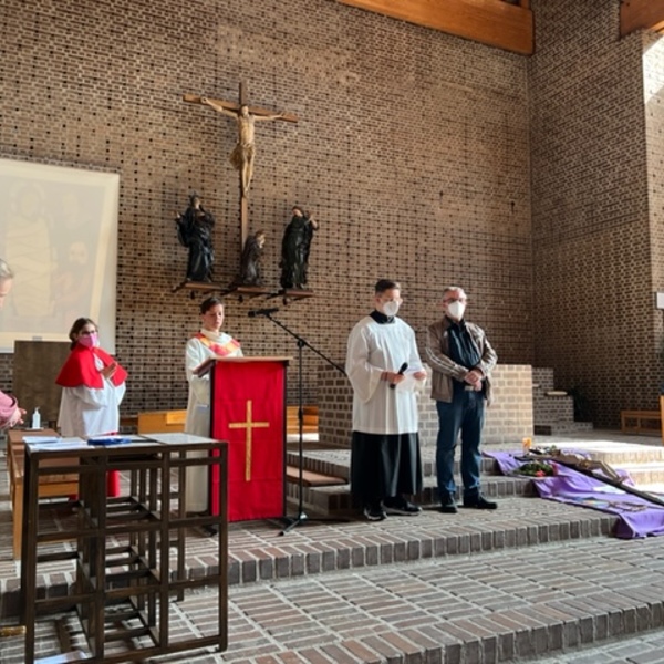 Am Karfreitag wurde um 15 Uhr ein kindgerechter Kinderkreuzweg gestaltet, bei dem der Leidensweg Jesu mit Symbolen aus dem Leben ausgelegt wurde. Damit wurde verdeutlicht, dass jedes Kind und jeder Erwachsene in seinen Gefühlen wie Trauer und Schmerz ernstgenommen werden muss. Zugleich erfuhren wir, dass Jesus in den Zeiten des Leids uns besonders nahe ist und wir uns begleitet wissen dürfen.