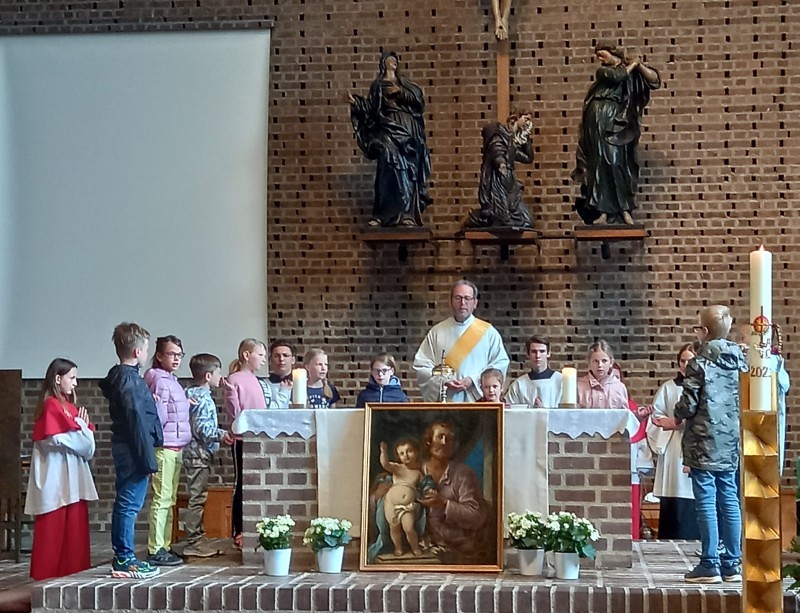 frohe Lieder. Sie lesen in der Heiligen Schrift und denken darüber nach. Josef will so leben, wie Gott es sagt.