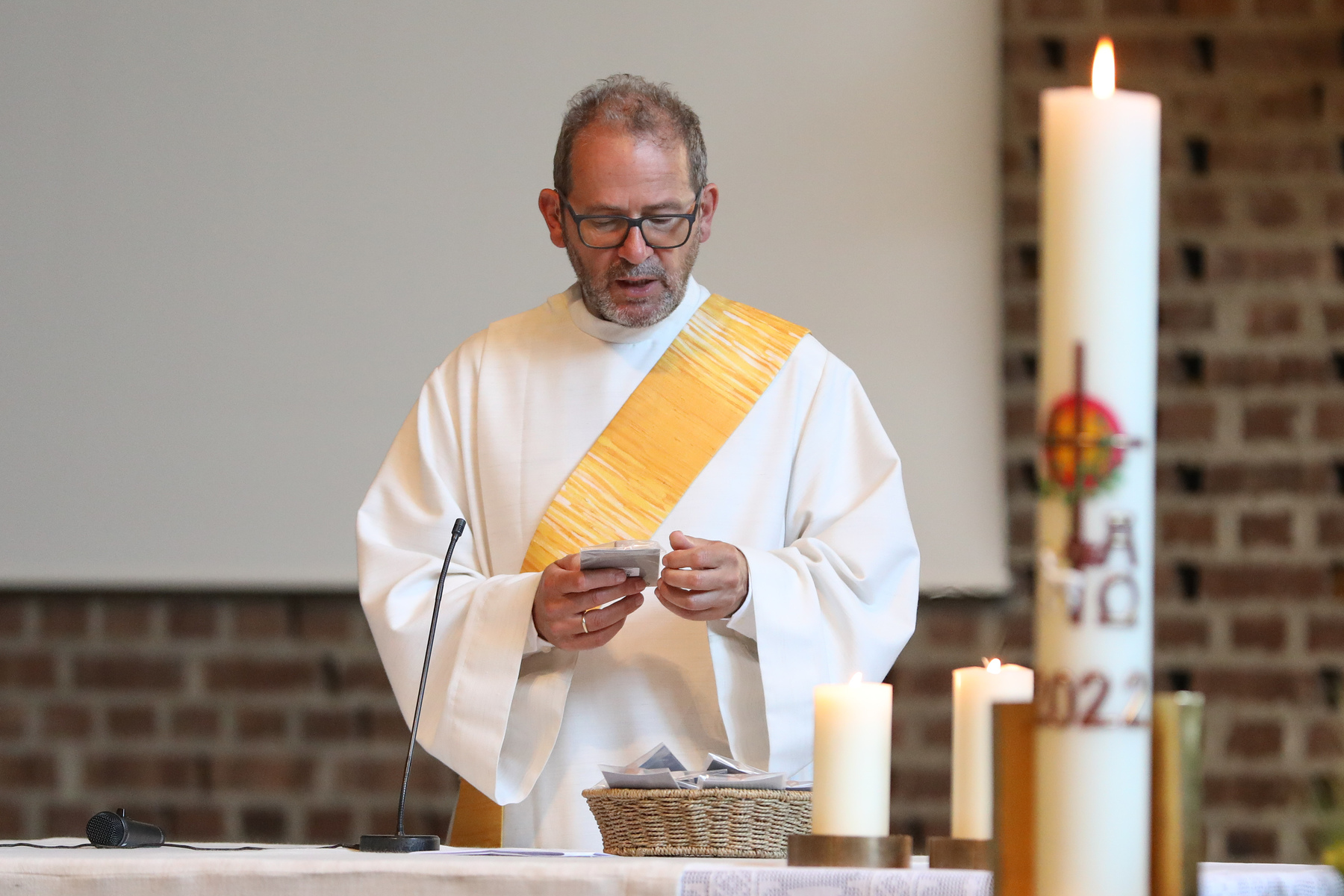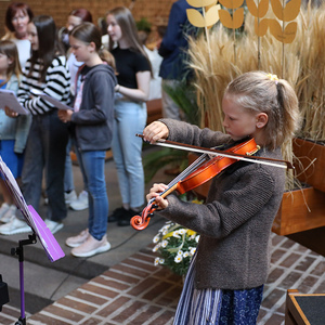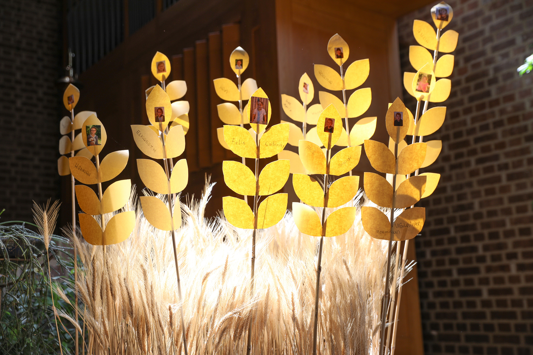 Zu diesem Fest wurden sie von ihren Religionslehrerinnen und Diakon Andreas Hasibeder vorbereitet. Der Pfarrgemeinde präsentierten sich die Kinder mit gebastelten Getreidehalmen, die unsere Kirche schmücken, auf denen sie sich mit Foto und Namen vorstellten. Das Brot – im Teilen und Brechen – war auch Mittelpunkt der Lesungen.