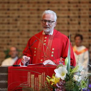 Firmspender Dr. Adi Trawöger: „Auferstehung ist kein klassisches Happy End, sondern ein Aufstand gegen das Böse, Gewalt und Angst“, so Trawöger. „Jesus zeigt seine Wundmale und lädt Thomas ein, sie zu berühren. Heute wird das Leid der Welt in diesen Wunden spürbar, und wir dürfen nicht gleichgültig bleiben. Gott hilft uns keine Angst zu haben, er umarmt uns auch beim Scheitern. Liebe hat das letzte Wort. Durch Gott werden wir nicht härter sondern herzlicher.“