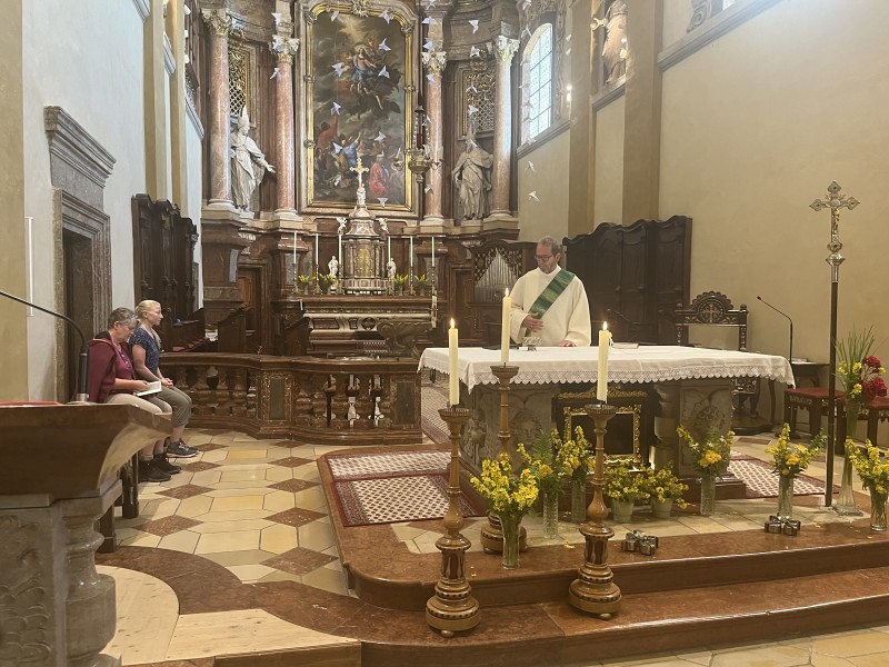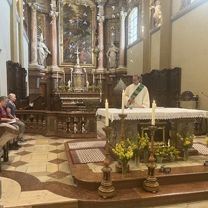 Zum stimmungsvollen Gottesdienst in der Stiftsbasilika kamen noch einige Wallfahrer dazu, die sich mit dem PKW auf den Weg gemacht hatten.